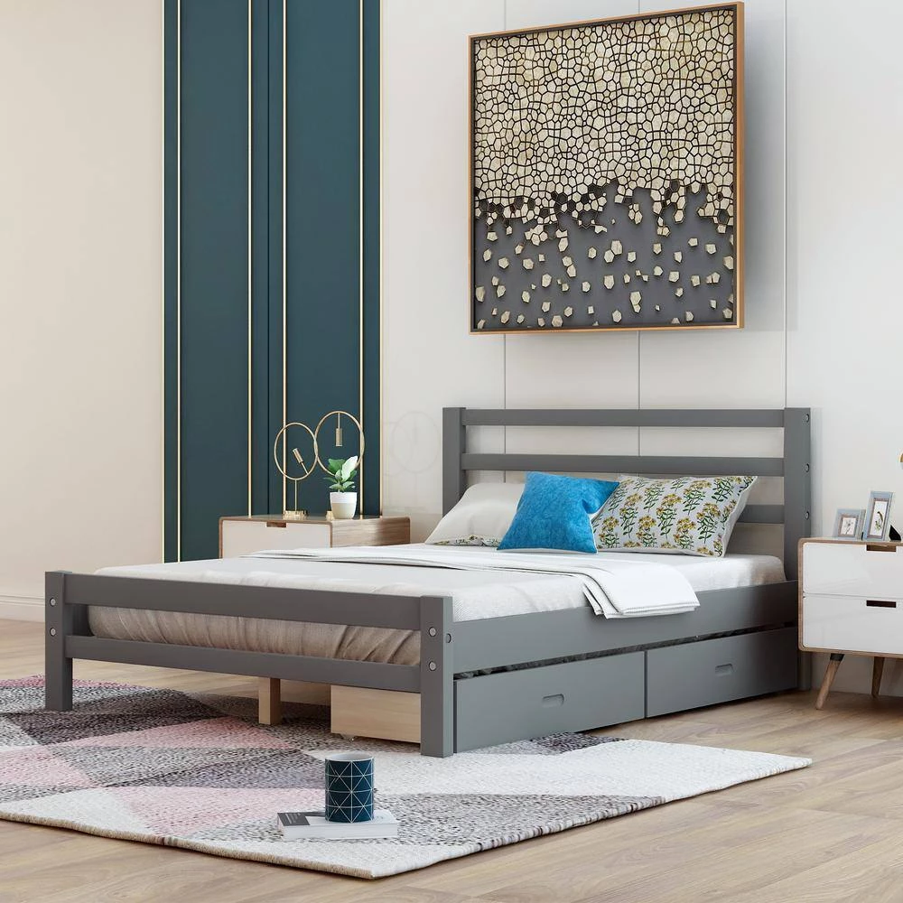 - This platform bed includes 2-Drawers, which has 10 slats to support