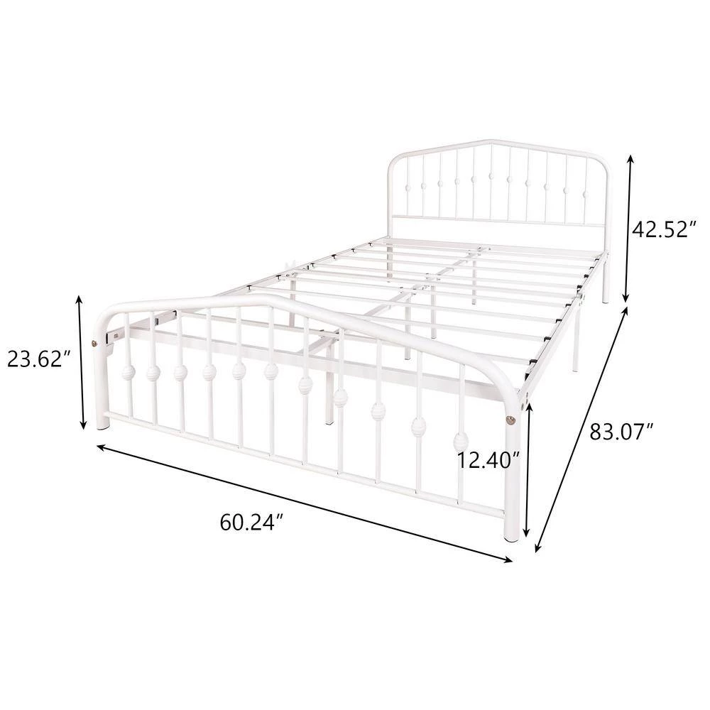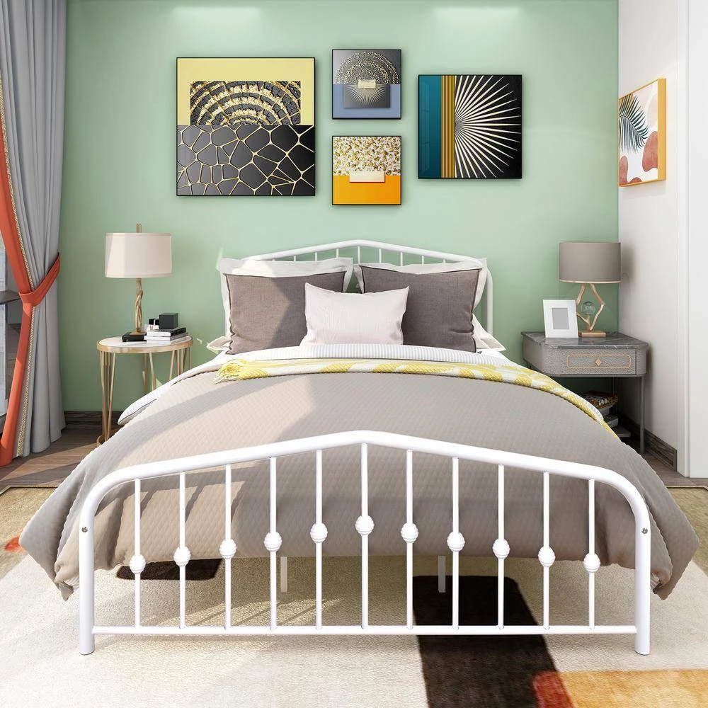 This metal platform bed is an elegant bed frame that pairs perfectly. With a variety of home interiors. The vintage look headboard also adds an artistic temperament and character to your bedroom.