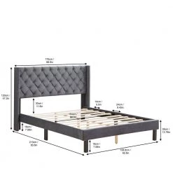 This platform bed is a modern simple frame that can be used with any style of home decoration. It has wide space under the bed and provides extra storage space for storage boxes, quilts, clothes and toys to make your room look cleaner and tidy. The platform bed is made of solid quality pine and MDF panels with tight spacing between the panels for durability and high load carrying capacity to ensure a long life. All parts, tools and instructions are contained in highly efficient packaging boxes for easy installation.