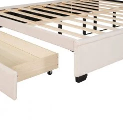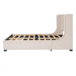 This beautiful Upholstered Platform Bed features upholstered headboard that adds a contemporary chic look to your bedroom and filled in thick foam to add extra comfort. Sturdy wood frame construction and a wooden slat system to add extra stability and safety. With such a sturdy, on-trend design one would expect this bed to have a much higher price point, although in actual fact this piece aligns with our ethos of allowing customers the unique experience of shopping for curated pieces which capture the essence of what a living room or bedroom should be. Good design should be accessible to all.