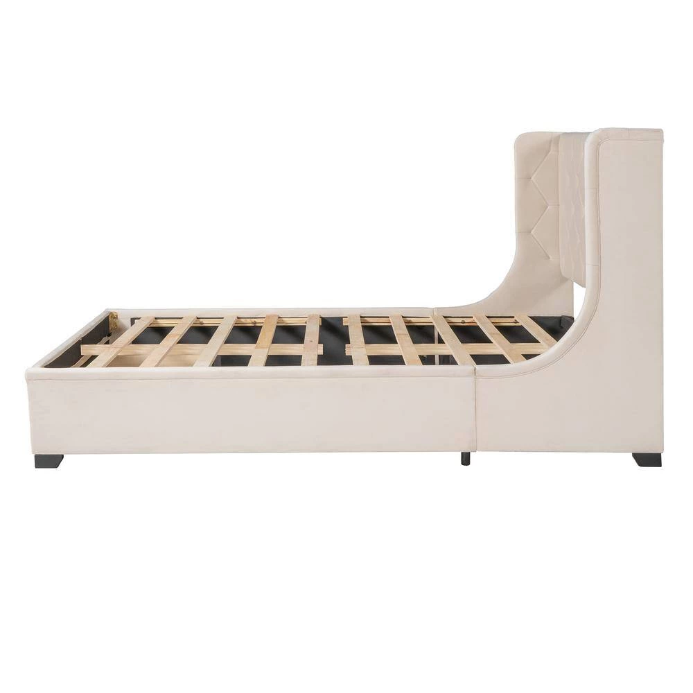 - [Elegant Design] Upholstered in carefully-selected velvet fabric and with docorative details, this platform bed not only suits any home decor, but is timeless in its design. The Wingback headboard creates coziness, while the single color of the design creates versatility.