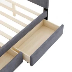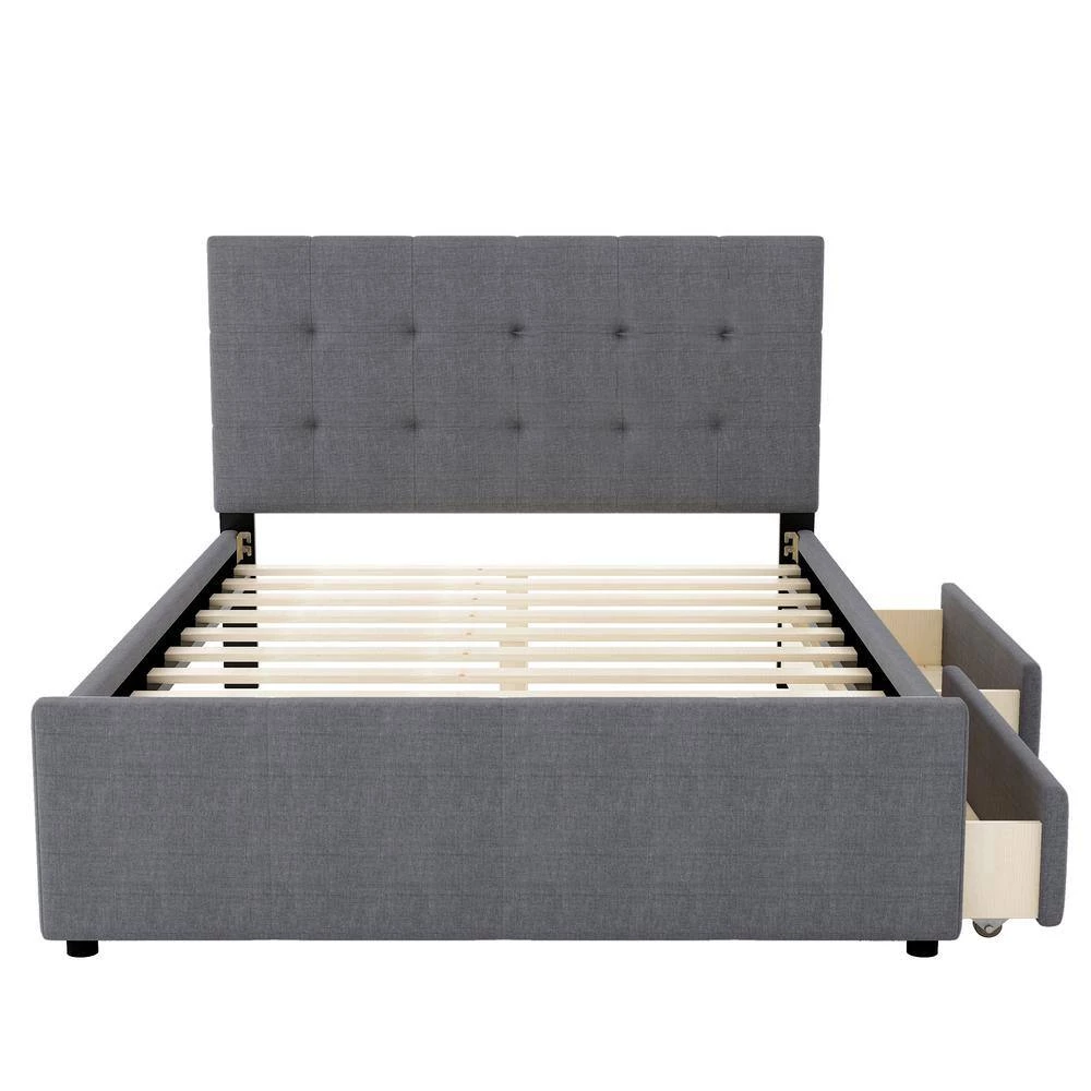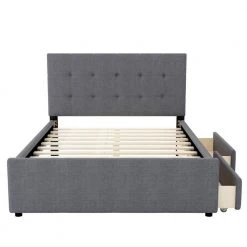 This excellent Queen size upholstered bed frame is the perfect platform to hold your standard size mattress and eliminates the need for a box spring. The whole construction is made of linen,solid wood and MDF so it has a long service time. With 10 slats which are tightly distributed, the bed frame can easily hold the weights of the mattress and two adults. Our bed frame is ergonomically designed to ensure the quality of sleep and relieving the fatigue. Its modern and concise design goes perfectly with your rooms or hotels thus you can put the bed in the guest room to be a nice spare bed.