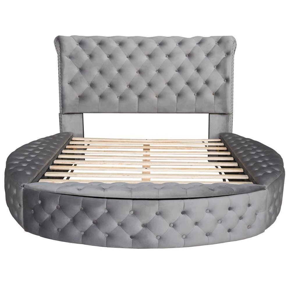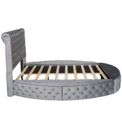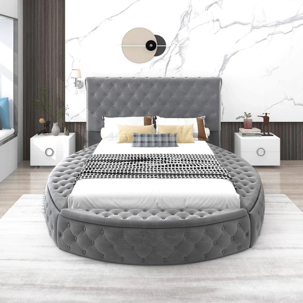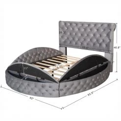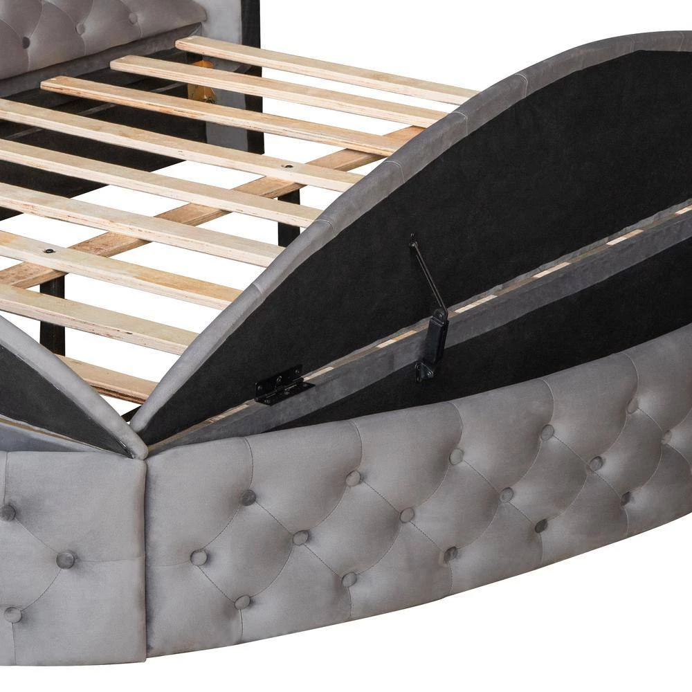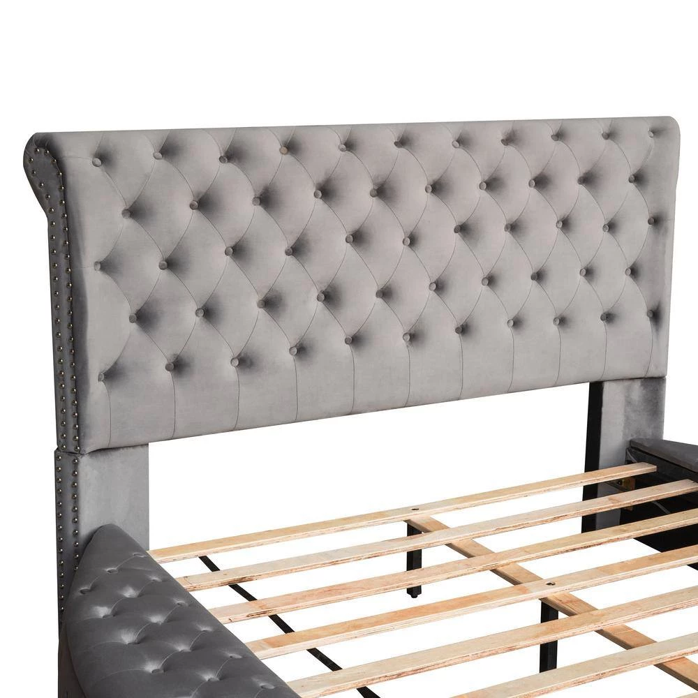 - Modern style contemporary and chic bed frame with under bed storage and button-tufted diamond detailing along both sides and headboard and footboard
