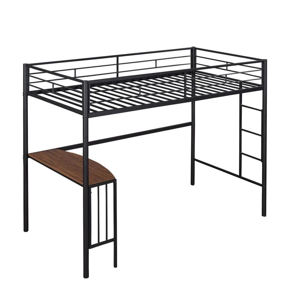 A simple yet appealing fusion of style and practicality, this metal loft bed is designed to bring yourabode extra sleeping space without excessively encroaching on the limited floor space compact rooms, all at an affordable price. Ideal for small bedrooms, the extra space underneath the loft bed creates a semi-enclosed area and allowing your family to have their own space that they can customize and decorate as their own. With a surface manufactured from solid MDF, the build-in desk is sturdy enough to withstand heavy loads from textbooks to decor. The metal frame construction finished in a powder coating has heightened durability to resist against rusting, erosion, scratches, and supports up to 250 lbs. . Upper metal slats are built-in and offer solid support and prevent untimely mattress sagging. Designed for easy assembly, quickly put your bed frame together with the user-friendly instruction manual included.
