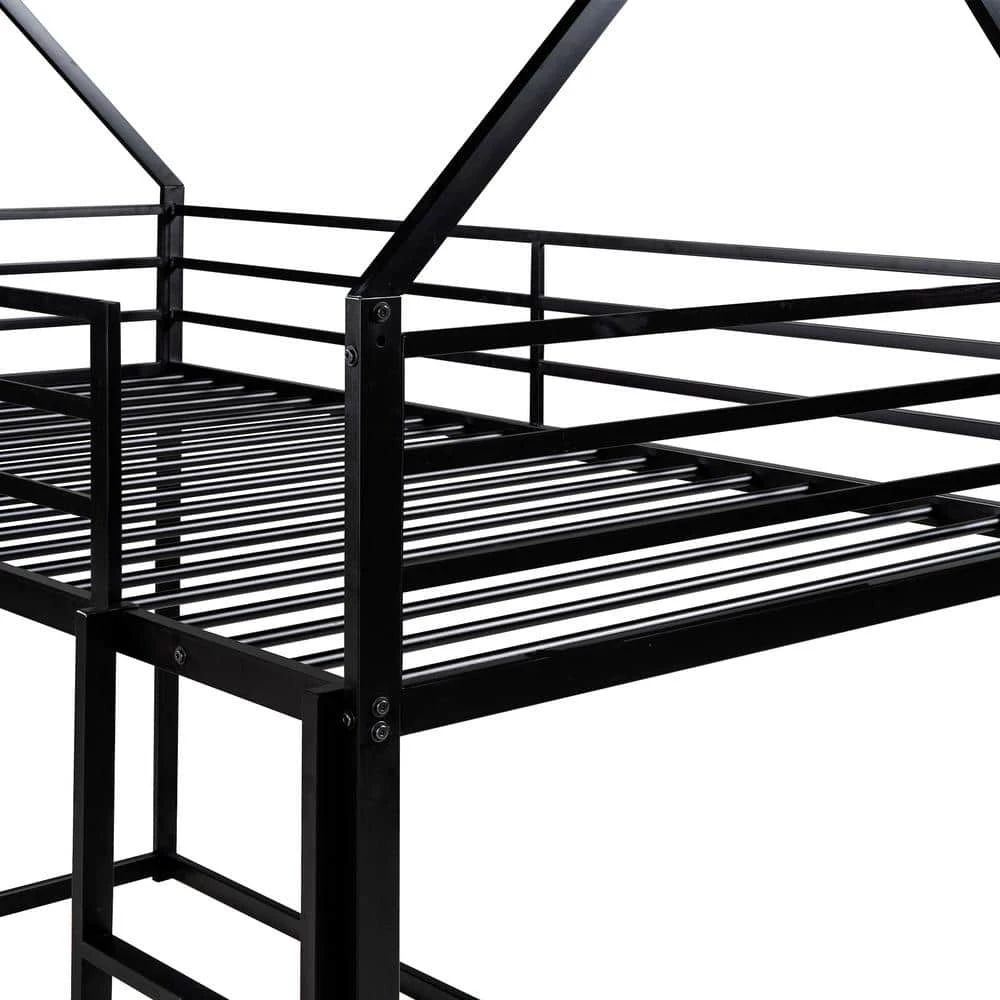 - [Sturdy Frame] Made of solid metal frame, the house bunk bed is durable and reliable for you bedroom.Surrounding with high guardrail on upper bed, no need to worry about safety when sleep alone.