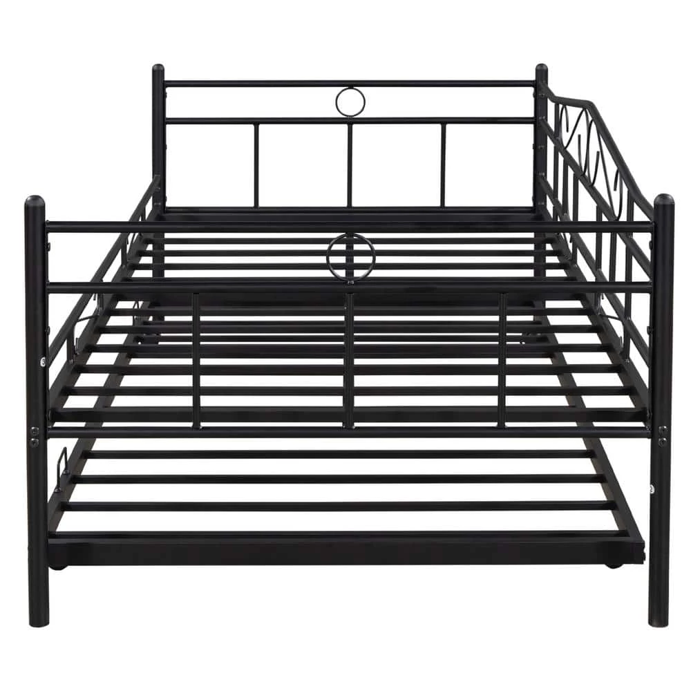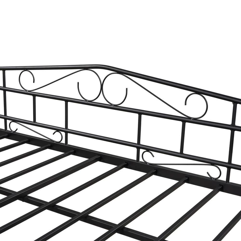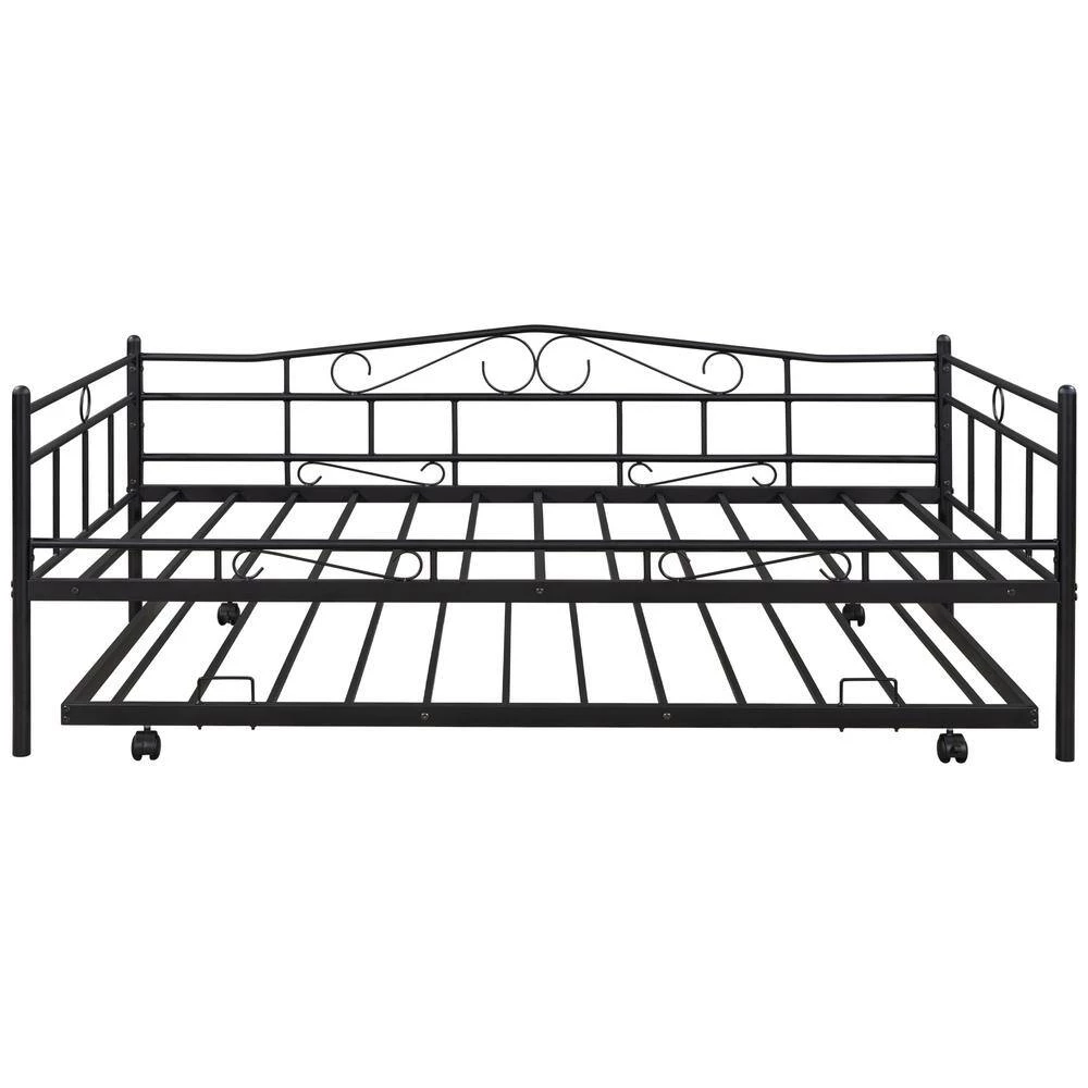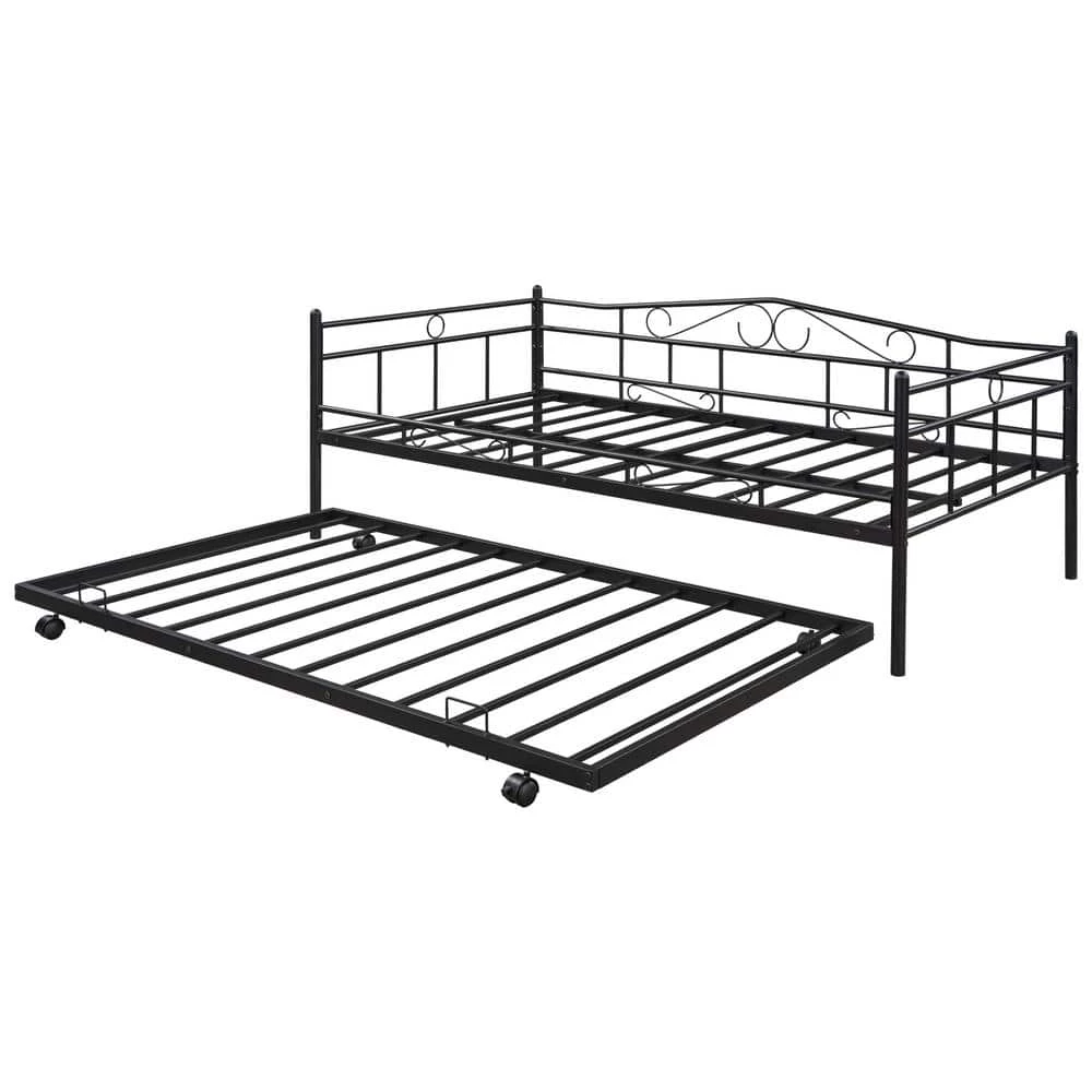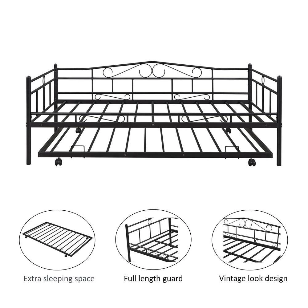 Made by sturdy metal, this daybed with trundle provides extra durability and safety. Additional metal slats support mattresses and extend their life effectively. The side guardrail can prevent you from falling off or the mattress from moving.The stylish design matches every decoration of your room. With this comfortable daybed, you can spend the whole day on it from enjoying a movie to taking a long nap. It is a great solution providing extra sleeping place for guests.