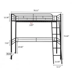 Made of sturdy metal, this loft twin bed provides extra durability and safety. Additional metal slats support mattresses and extend their life effectively. Full-length guard rails surrounding top bunk keeps you in place when you sleep. Inclined ladder makes it easier to climb to upper bunk. It is also an excellent space saver. Don’t worry about your bed occupying half of your room. With this loft bed, you will get extra space for desk, coach, or cabinets. Contemporary design makes it easy to integrate into your bedroom decoration.