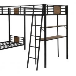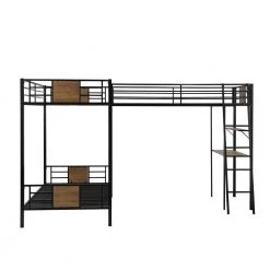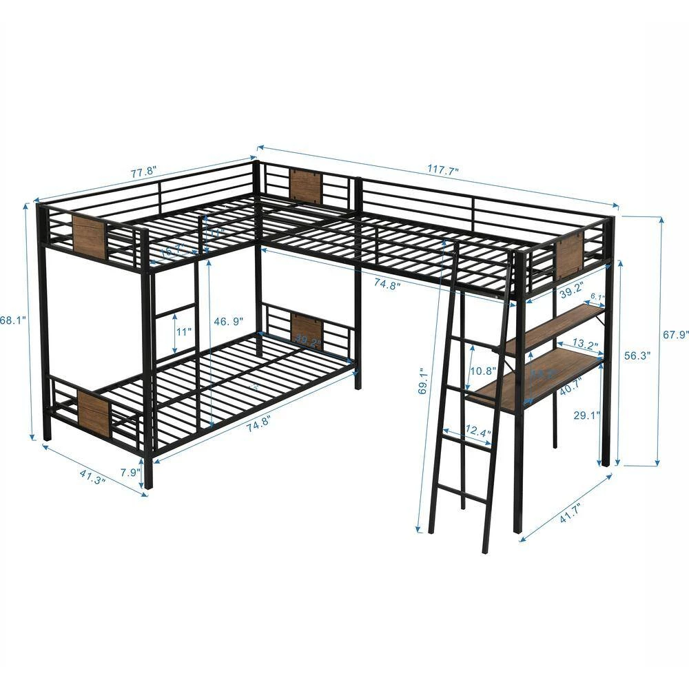 This is a versatile, mission style L-Shaped bed. Constructed of metal and MDF board, these beds are both stylish and durable. These beds are perfect for your family, sleepovers or your extra guest sleeping at your lake house getaway. High-quality, MDF board and sturdy metal, durable frame ensures stability and durability for long-term use. Built-shelved offer convenience for space saving.This L-Shaped Bunk Bed and Loft Bed is designed with a clean silhouette and a hue of elegance. It suits all styles of home decoration, and completes the look of any bedroom.