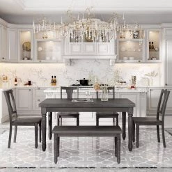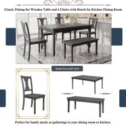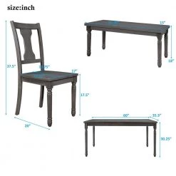 - [Dining Set for 6] Gather everyone around this dining set – it can comfortably seat 6 people with one table, four chairs and one 2-person bench included, create a warm and relaxed dinner time. Perfect for family meals or gatherings in your dining room or kitchen.