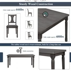 - [Sturdy Wood Construction] Crafted from high-class MDF boards, the tabletop is strong and smooth for easy cleaning; the rubber wood table legs are solid to ensure a stable construction. The chair and bench legs are made of plywood with strong bending resistance, and the rubber wood seat is wear-resistant, built for a long-time use. Table weight capacity: 400lbs; Chair weight capacity: 444lbs.