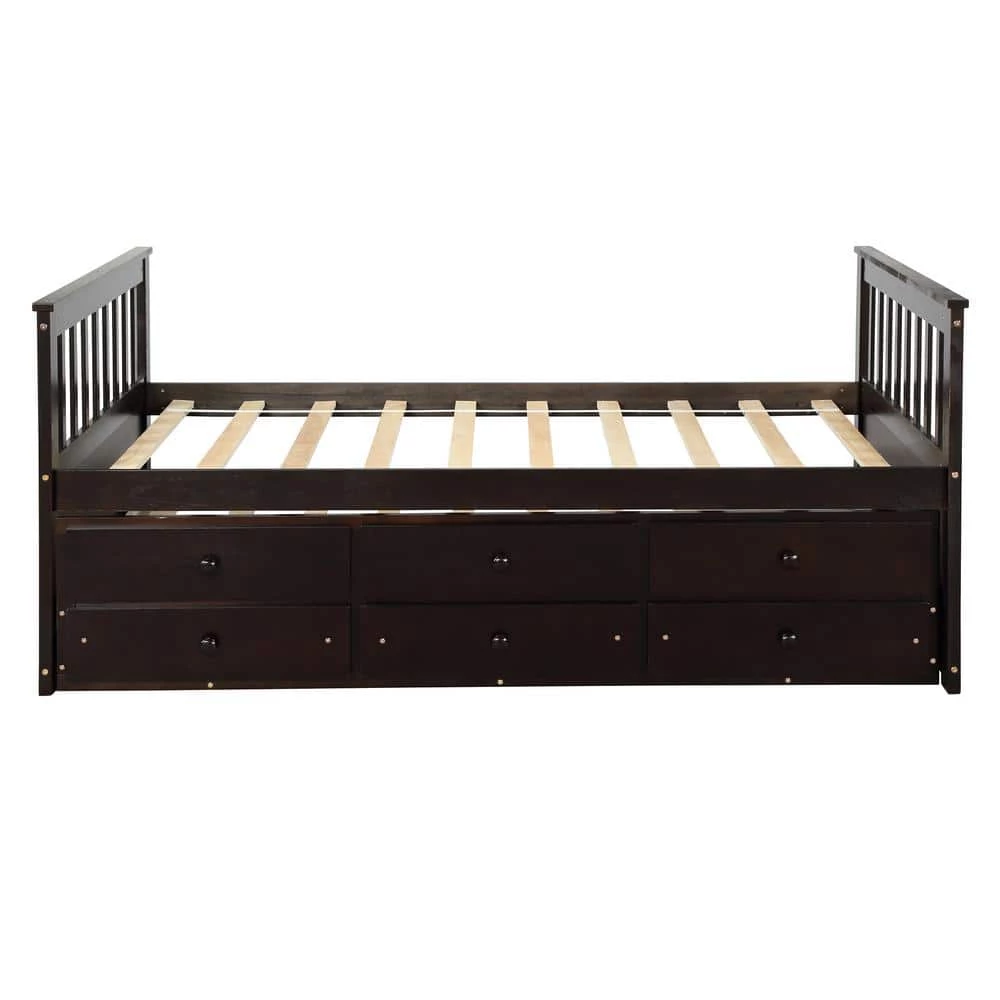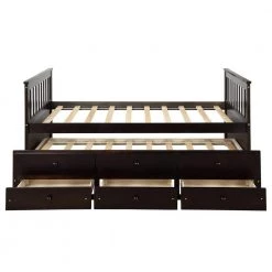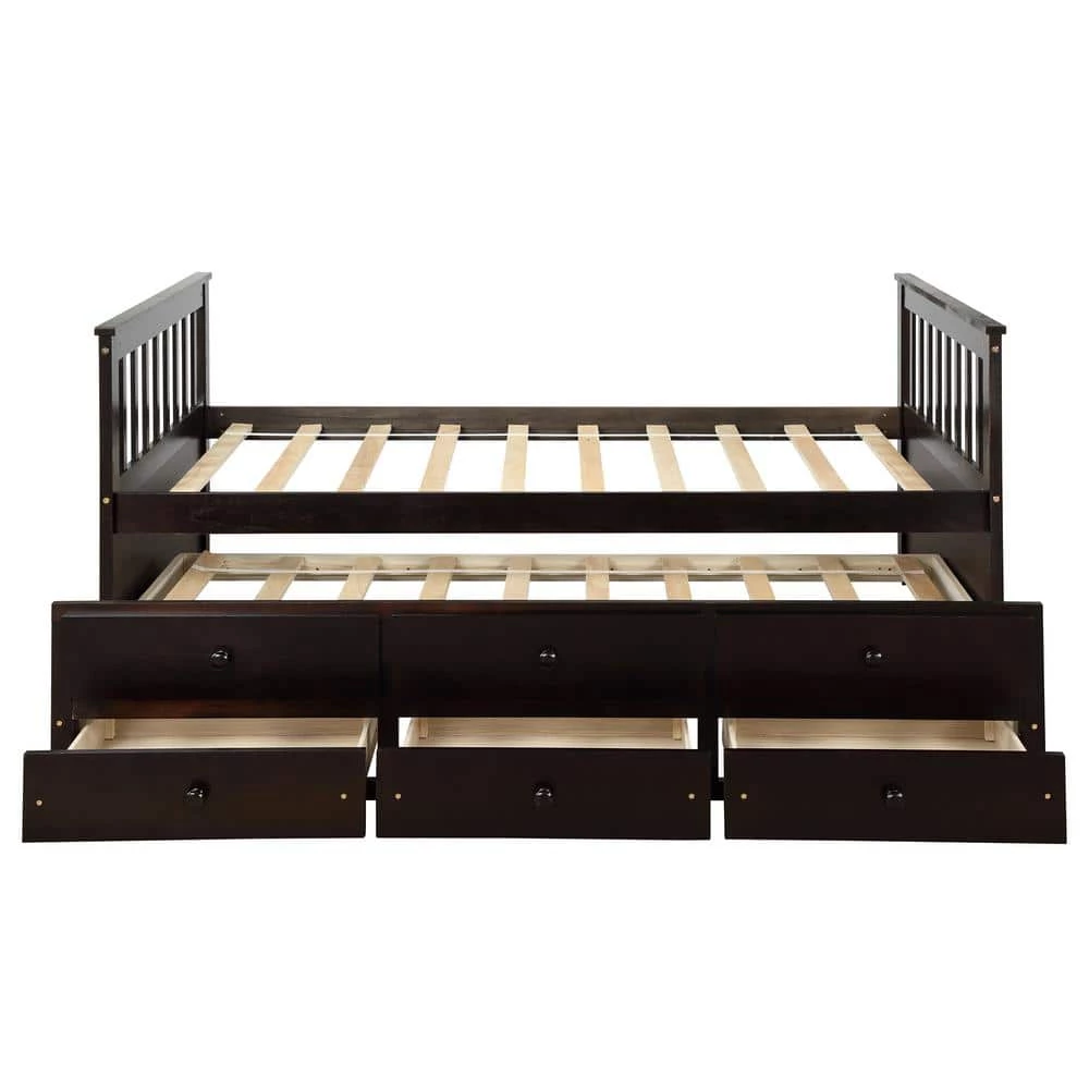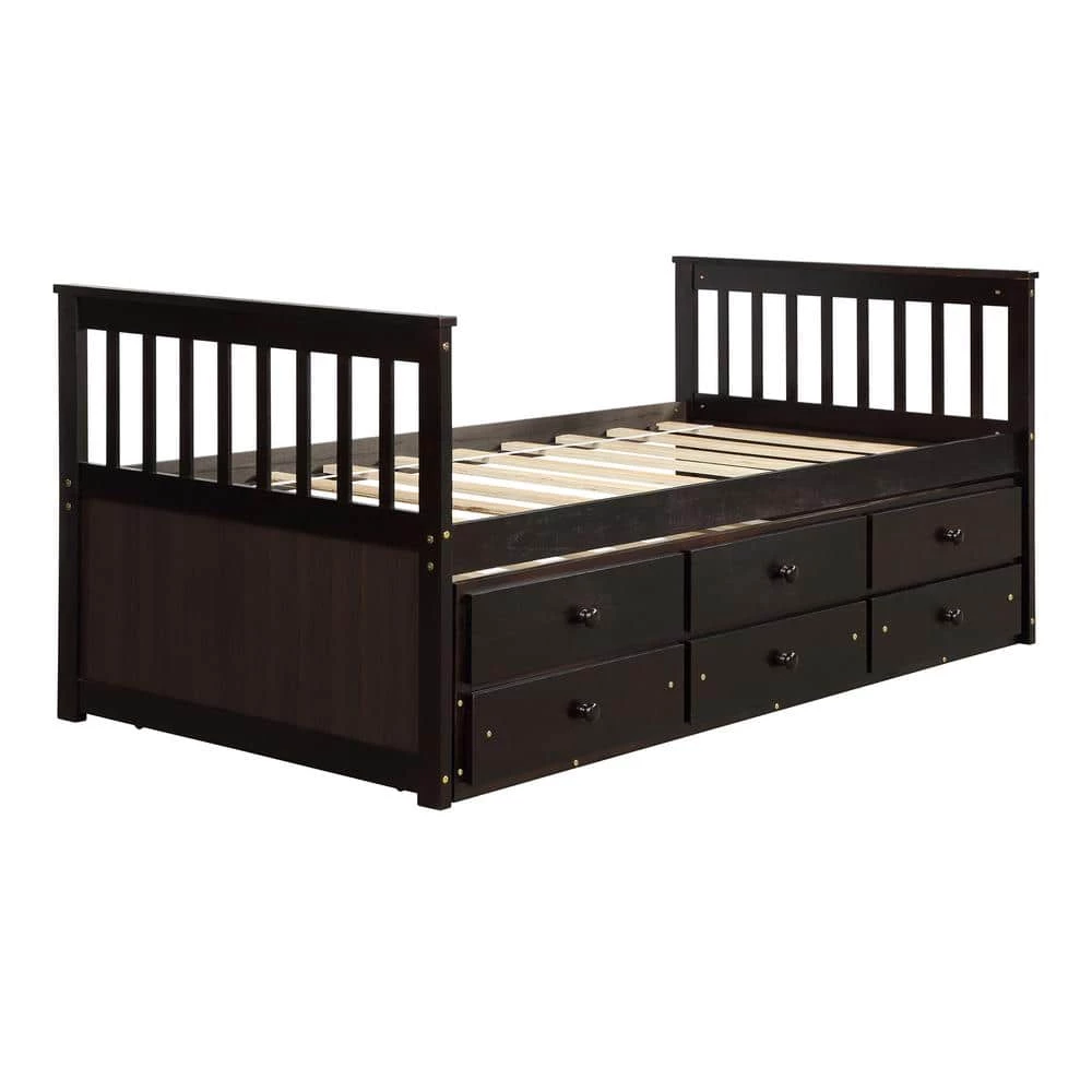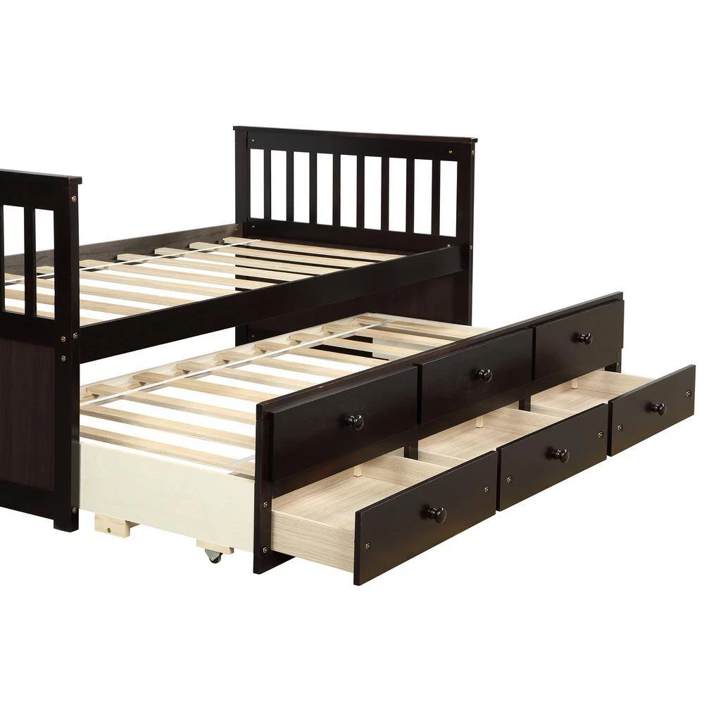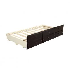 - 3-in-1 drawers built into trundle provide even more storage while trundle bed underneath twin bed features hideaway for space saving purpose and could be pulled out to serve as a guest bed when need be