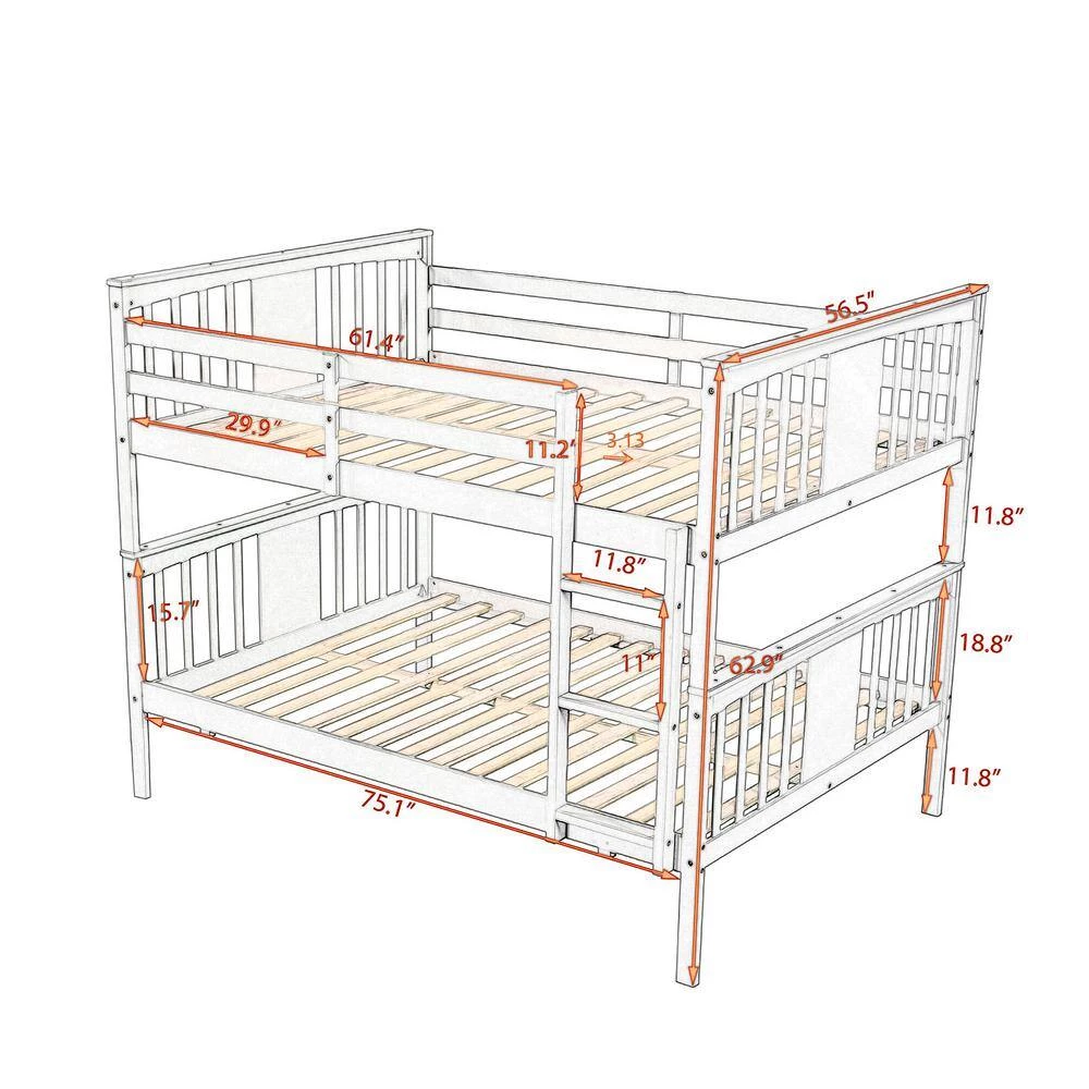 If you need extra sleeping space or you love sleepovers, this Full-Over-Full Bunk Bed is perfect for your home. High-quality, solid pine legs and a strong, durable frame ensures stability and durability for long-term use, and can be separated into two full beds. Slat kit included so box springs are not required. This bunk bed is designed with a clean silhouette and a hue of elegance. It suits all styles of home decoration, and completes the look of any bedroom.