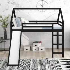 This Full Size Loft Bed with Slide is a minimalistic, stylish bed frame that works well with a variety of decorating styles and makes it easy for you to enhance and improve your space. Featuring strong, solid pine wood and many supporting slats, this bed is built to last, ensuring it will accompany you for many years. The beautiful finish lends an elegant look makes this bed frame an excellent addition to any bedroom, do not miss the chance take it home today. What’s more, this product arrives with a slat kit, do not miss the chance take it home today.