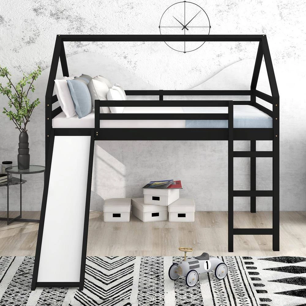 - Wood full size loft bed with slide is designed with a clean silhouette and a hue of elegance gives any room a spark of style that’s both modern and timeless