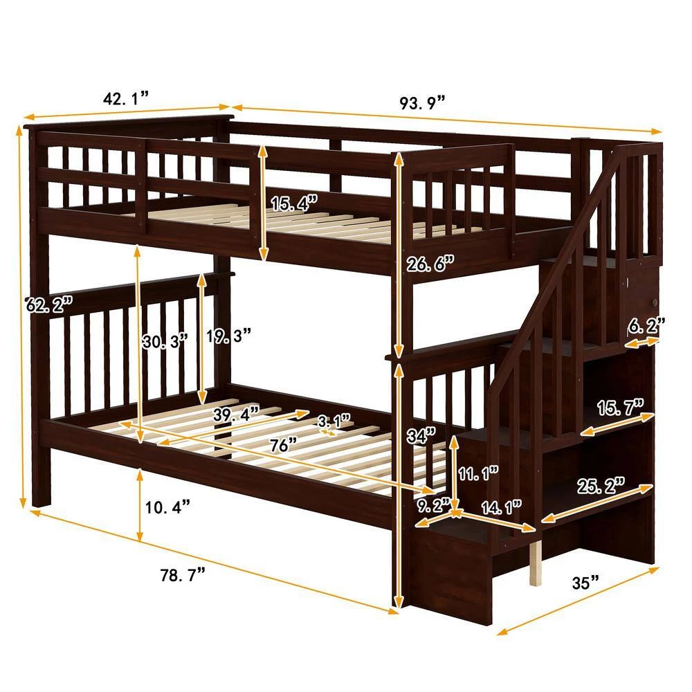- Maximized storage space four compartments of different sizes hide underneath stairs of bunk bed and are perfect for you to store quilts, bed sheets and other necessities on top of that, you can store books and toys, making room-tidying a breeze functional and aesthetic, bunk bed will enhance any bedroom