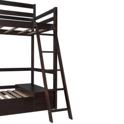 - [Maximized space] Twin Size Loft Bed Wood Bed with Convertible Lower Bed, Storage Drawer and Shelf perfectly serves homes with limited space. A Storage Shelf underneath loft bed is perfect for you to store books and toys and other necessities. In addition, shelf can be installed on back or on left side, we recommend installing on left side.
