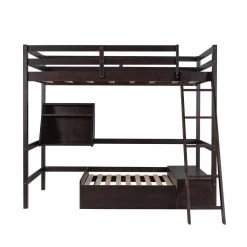 - [Quality Structure] This muti-functional loft bed is crafted from a solid pine wood frame, with commercial grade MDF board for quality control and durability. Built to last, this bed is firmly secured with heavy duty screws for solid stability you can rely on. Coming with built-in mattress support, the bed slats to help increase the longevity of your mattresses.