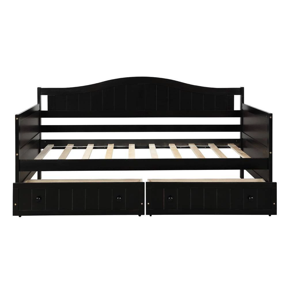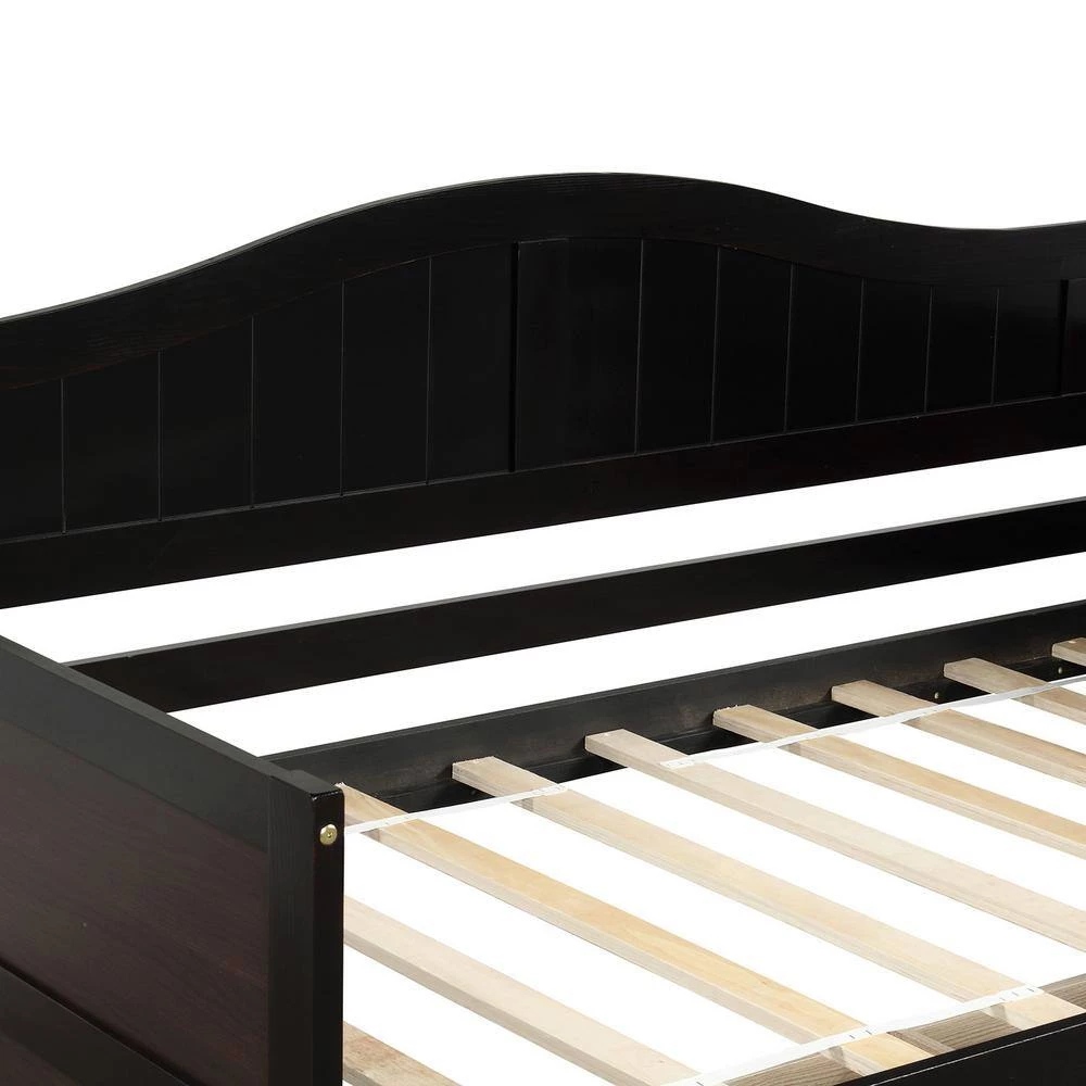 If you need extra sleeping space or your kids love sleepovers, this daybed with handy pull-out drawers is perfect for your home. High-quality, solid pine legs and a strong, durable frame ensures stability and durability for long-term use. Slat kit included so box springs are not required. This daybed is designed with a clean silhouette and a hue of elegance. It suits all styles of home decoration, and completes the look of any bedroom.