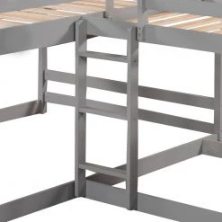 - This L-Shaped bunk bed is designed with a clean silhouette and a hue of elegance. It suits all styles of home decoration, and completes the look of any bedroom.