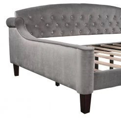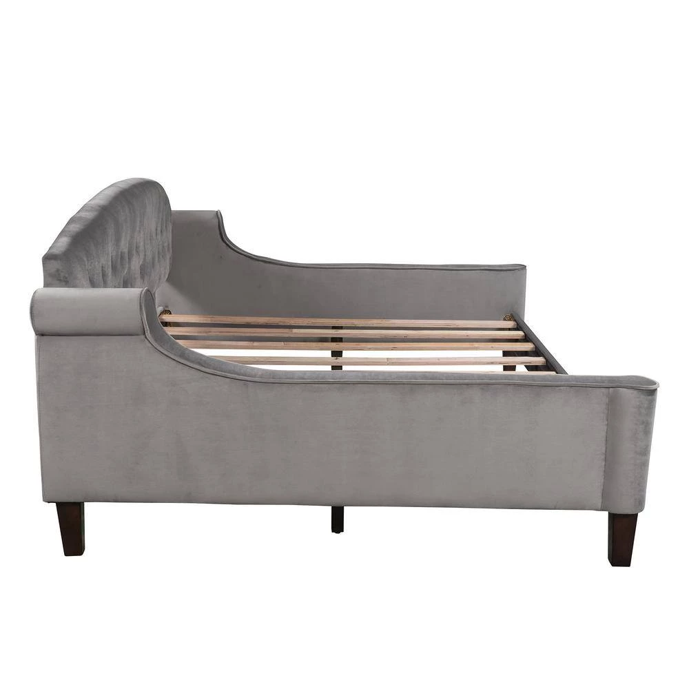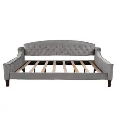 This twin-size daybed is the perfect addition to any living space.The fabric selected for the collection features blends designed to last. Crafted with plywood frame with wood supports, this dapper design strikes a glamourous wingback silhouette padded with foam fill and draped in lush upholstery with a deep button tufting and tailored piped edges. This daybed is an ideal choice for a living room, den, office, or any living space. The design, construction, and overall functionality are certain to grace your interior with added charm. The bed includes 8 slats and 8 slat support legs while four legs offer a stylish foundation.