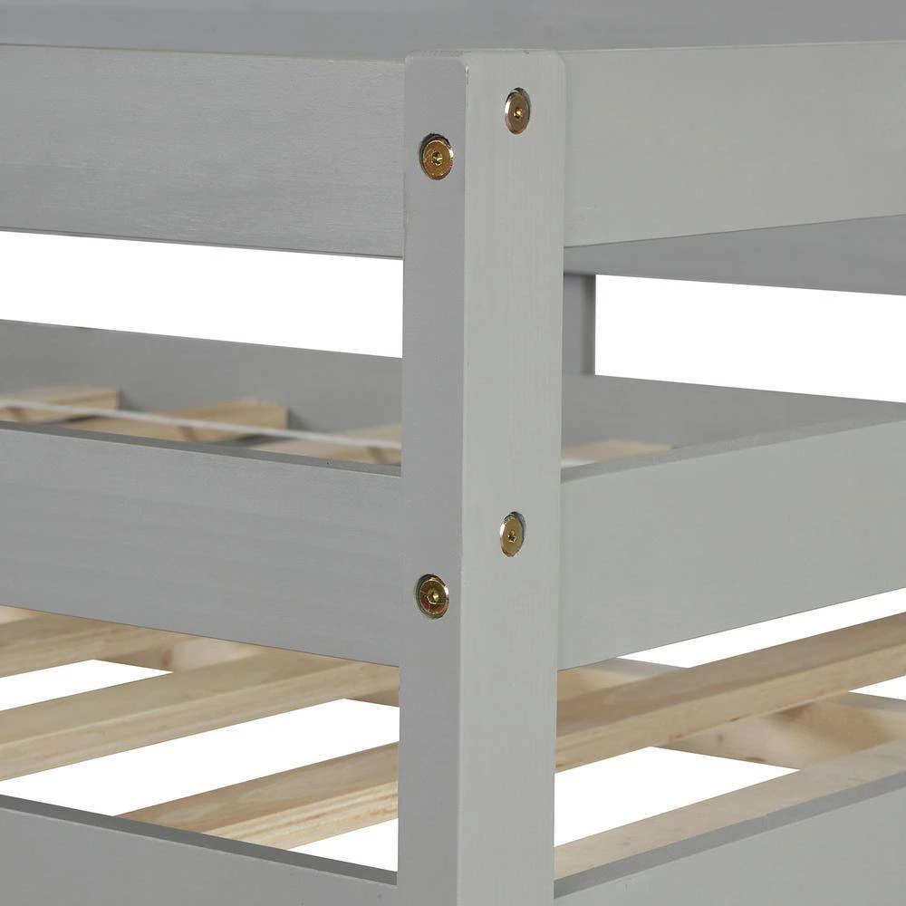 - [Designed for your family’s safety] The upper bunk features a full-length guardrail, while the bottom bunk is designed to include both a headboard and footboard. Along with the handrail, this bunk bed ensures top-notch security for your family thanks to solid legs, made of solid pine for added strength and durability.