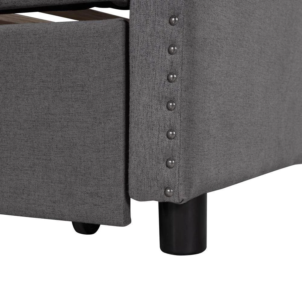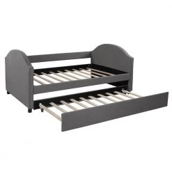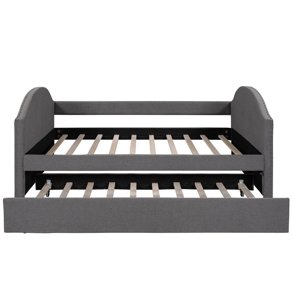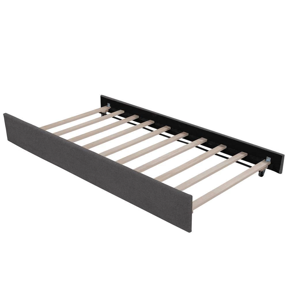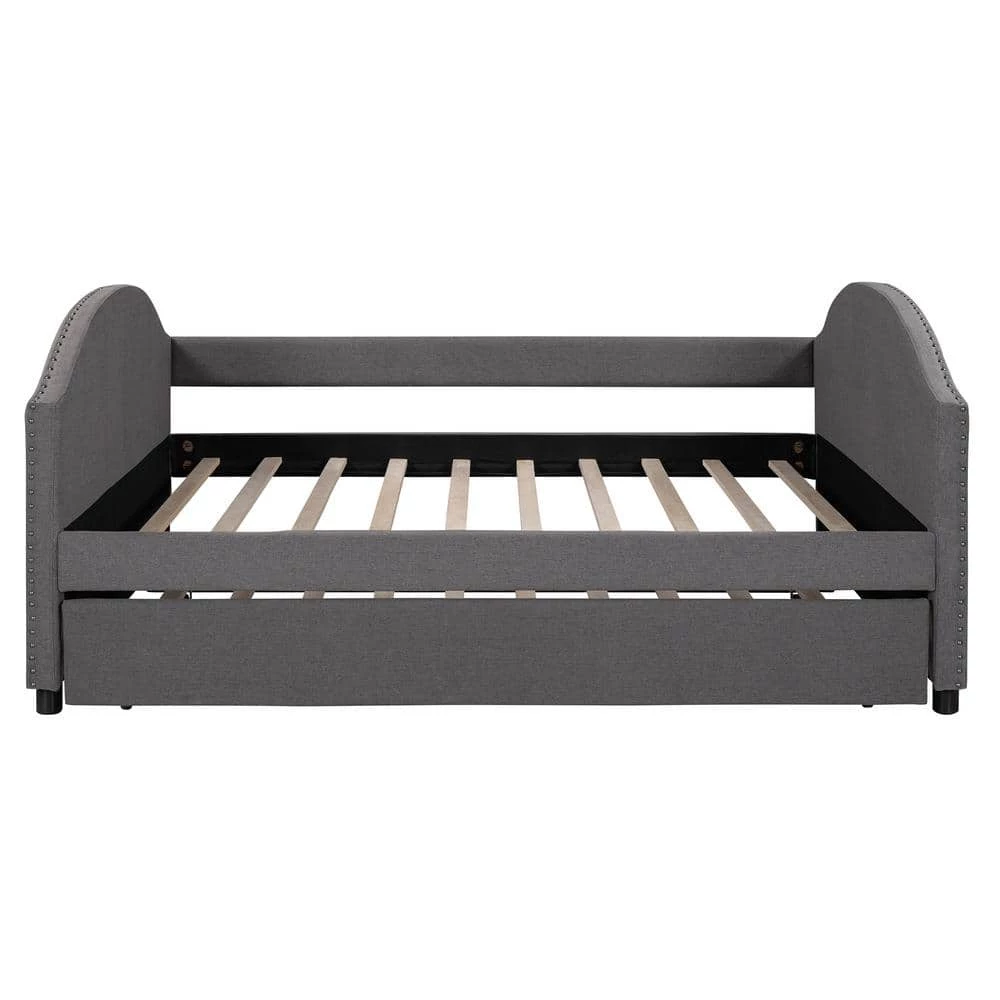 - No box spring needed, daybed frame comes with sturdy wooden slats mattress is not included a comfy linen fabric backrest and 2-armrests that bring you and your family a cozy feeling