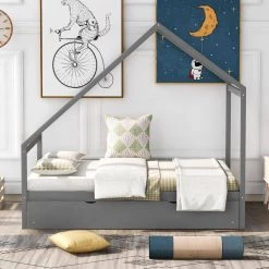 If you need extra sleeping space or your kids love sleepovers, this house. bed with handy pull-out trundle is perfect for your home.Thanks to the semi-enclosed space, your kids will have their own sleeping space that affords a comforting atmosphere for better sleep while not sacrificing air circulation.Let your kids imagination run wild with our House. Bed.Perfect for girls and boys to make up their own theme or simply keep it beautifully simplistic.Can be decorated with ribbons or lanterns on the eaves. The bed has pre-drilled holes which are standard features of our beds makes this easy to assemble.