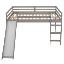 - The wooden slats naturally blend into the already sturdy frame to provide additional ground support and stability. The loft bed features guard rails for added safety, and is accessible via the sturdy, slanted ladder. Enjoy many long years of relaxation and family fun, secure in this meticulously designed wood platform bed.