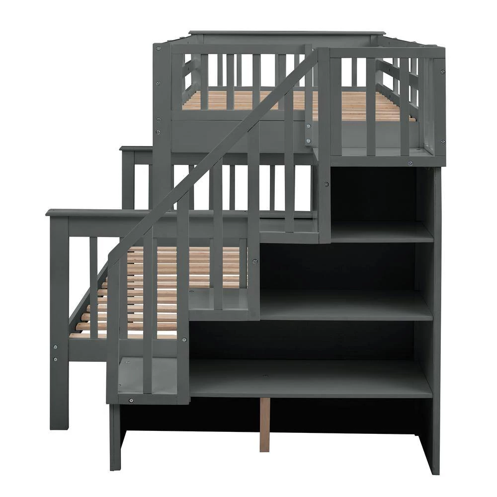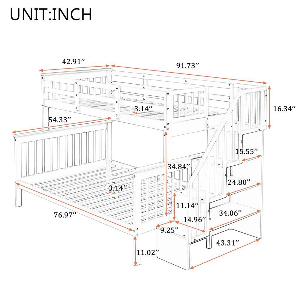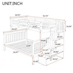 - [Maximized storage space] Four compartments of different sizes hide underneath the stairs of this bunk bed and are perfect for you to store quilts, bed sheets and other necessities. On top of that, you can store books and toys, making room-tidying a breeze. Functional and aesthetic, this bunk bed will enhance any bedroom.