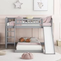 - [Built-in design]bunk bed comes packed with features, including a slide and a ladder. Coming with slide, bunk bed brings fun.