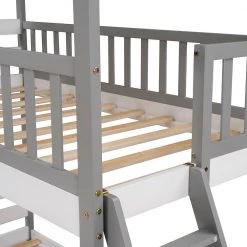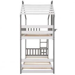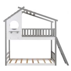 - [Playhouse-inspired style] featuring a pitched roof and round designed window, this unique and intricately designed bunk bed creates a fun and adorable space that not only serves as a comfortable sleeping area but also double as a space for your family to play and have fun