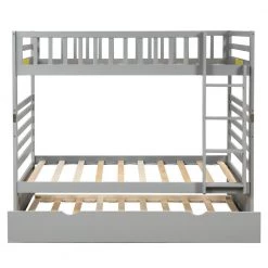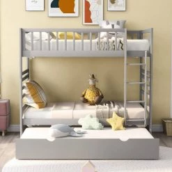 If you need extra sleep space, this Twin bunk beds with a Trundle bed is perfect for your home. High quality, strong pine legs and durable frame ensure long-term stability and durability. It can be divided into 2-double beds. Slat kits are included, so box springs are not required. This bunk bed is simple in design and elegant in color. It is suitable for all styles of home decoration and completes the appearance of any bedroom.