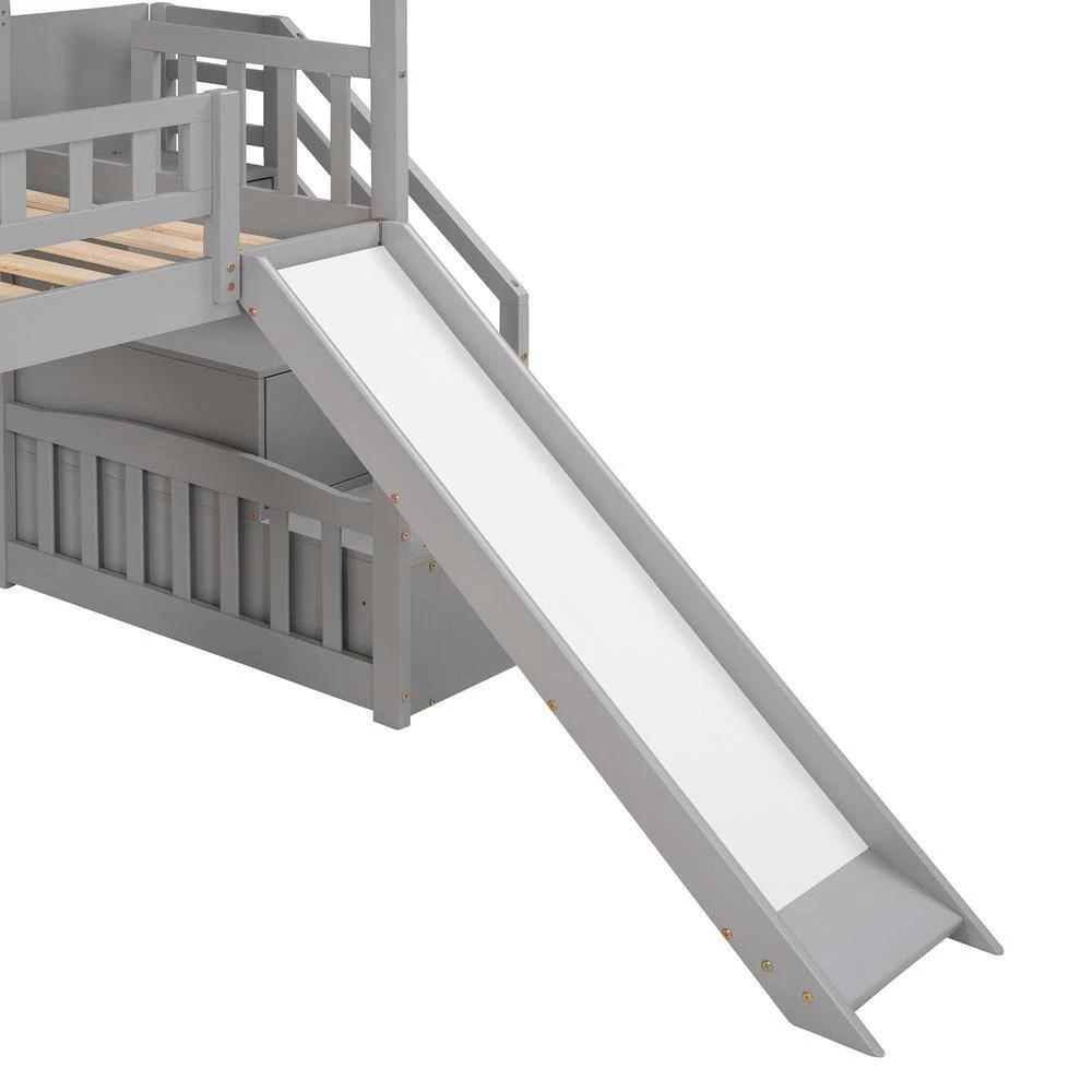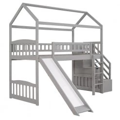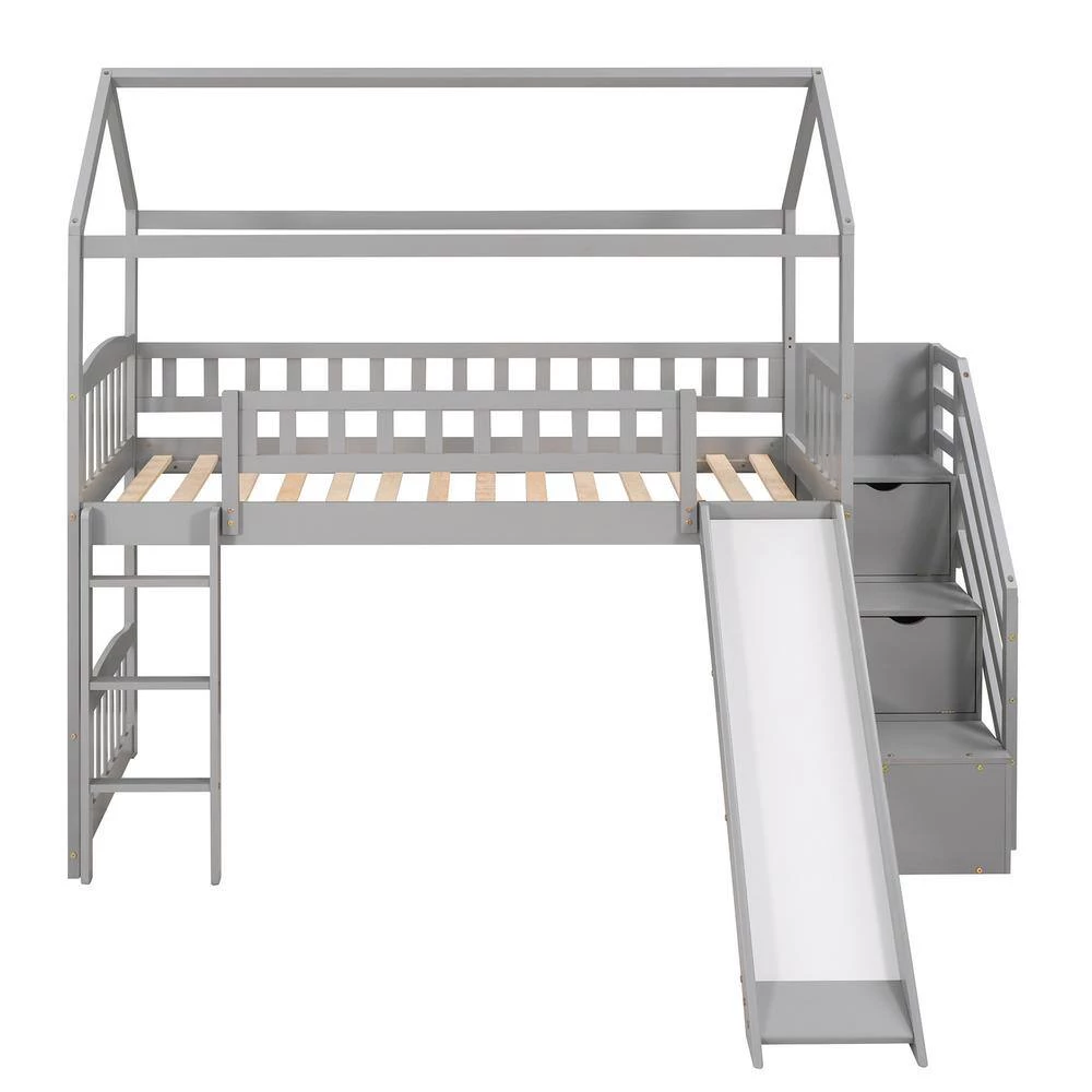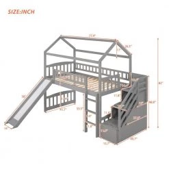 - [Friendly Design]Crafted with a whimsical playhouse design,comes with slide and storage steps, this loft bed offers you a comfortable and exhilarating experience during both sleep and playtime that will let their imaginations run wild. Perfect for hours of entertainment and relaxation, the playhouse design makes this loft bed the perfect centerpiece for any your bedroom.