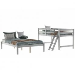 - Versatility galore, bunk bed features one twin size loft bed and one full size bottom bunk for any overnight sleepers can also be divided into 2-individual beds for even more convenience, depending on how you want to organize your space no spring box needed