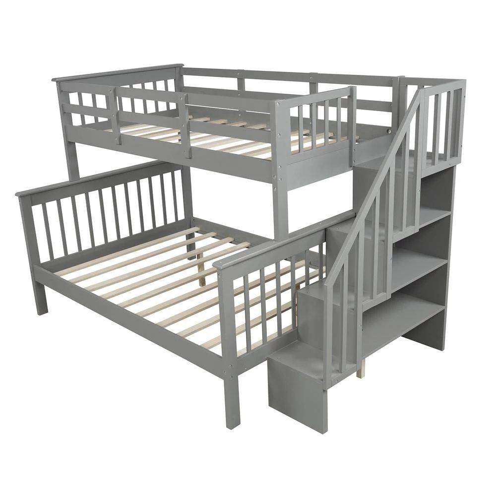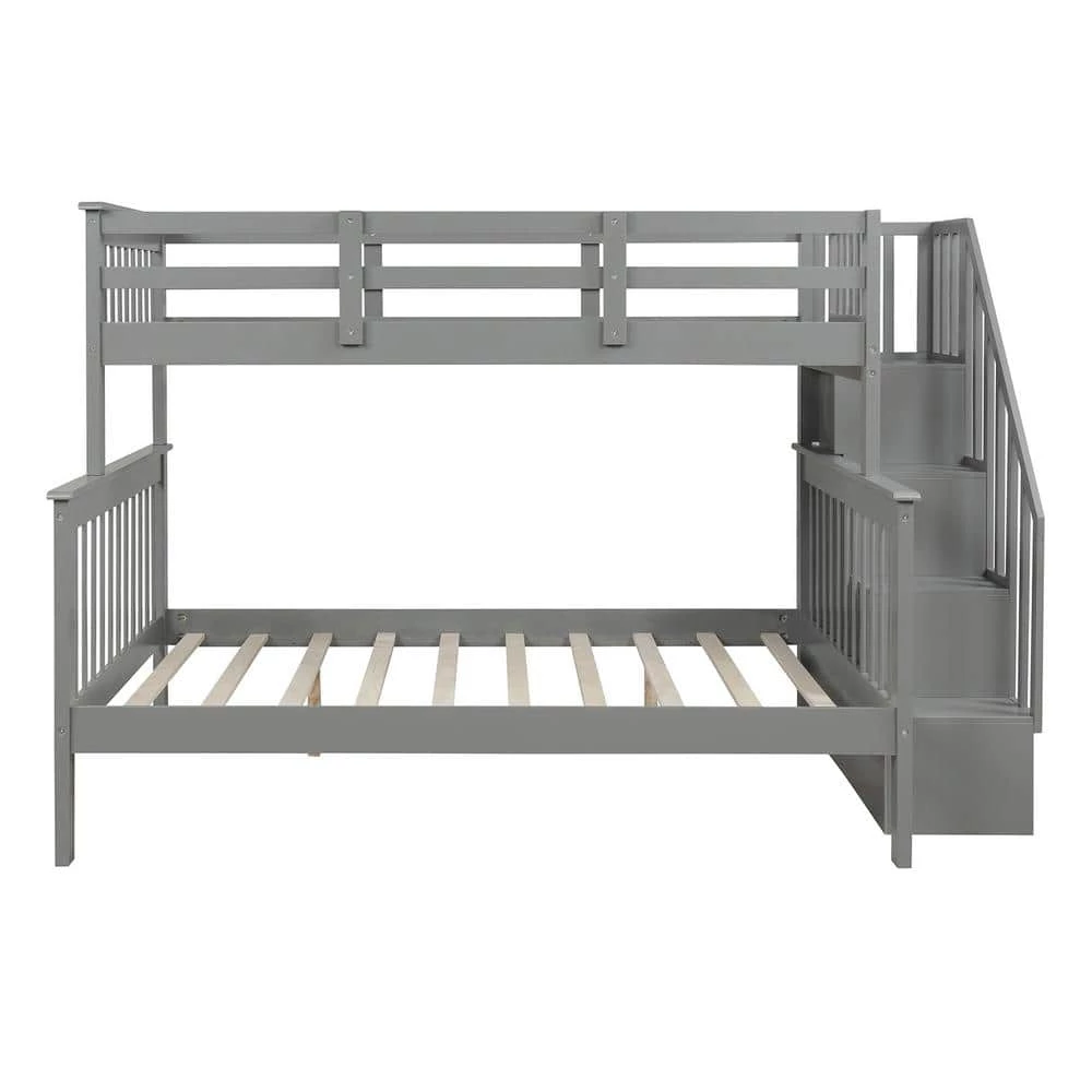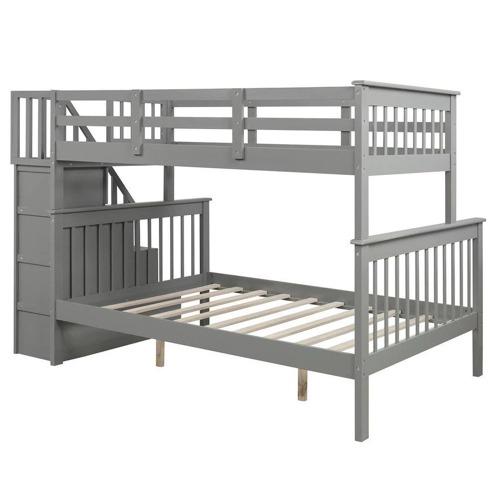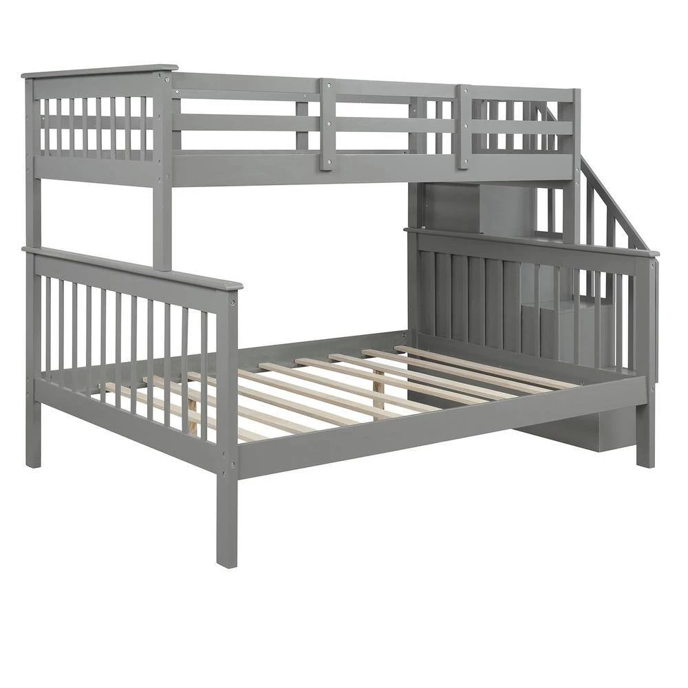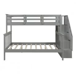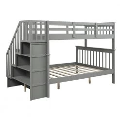 If you need extra sleeping space or your family love sleepovers, this Stairway Twin-Over-Full Bunk Bed with Storage is perfect for your home. Four open shelves located beneath the attached staircase provide ample storage for your family’ toys and bedding. High-quality, solid pine legs and a strong, durable frame ensures stability and durability for long-term use, and can be separated into one twin and one full-size bed. Slat kit included so box springs are not required. This bunk bed is designed with a clean silhouette and a hue of elegance. It suits all styles of home decoration, and completes the look of any bedroom.