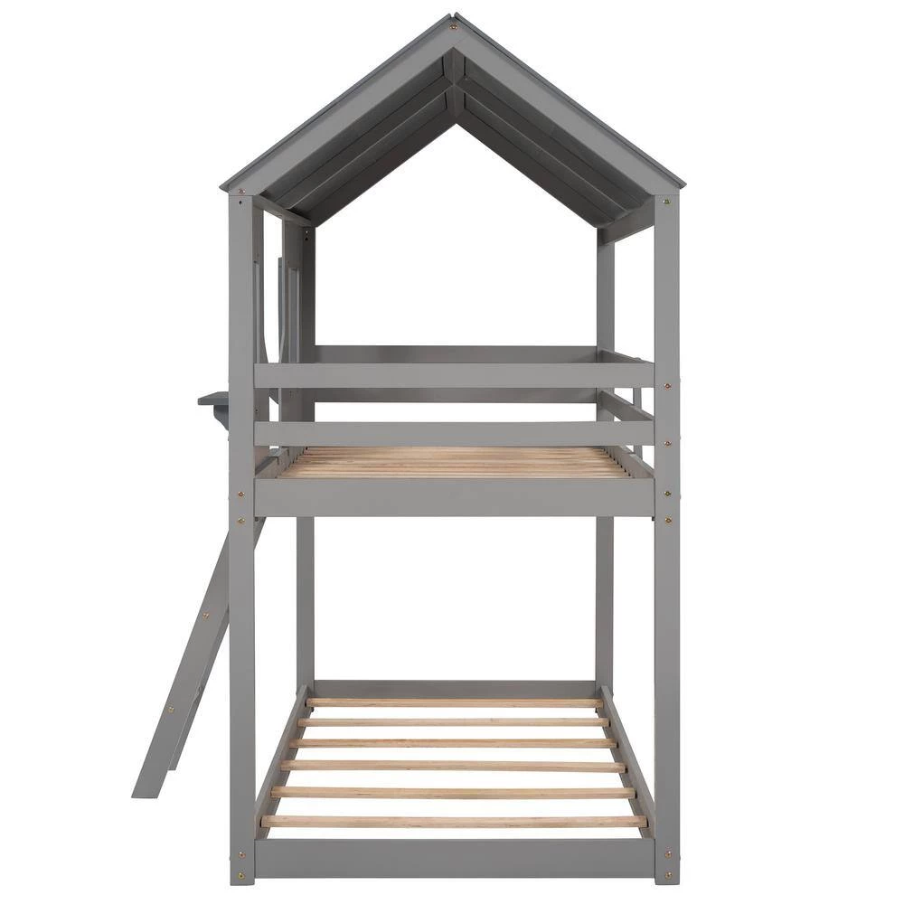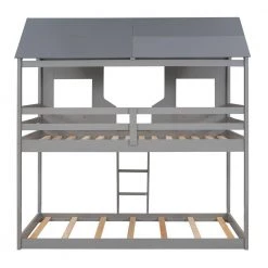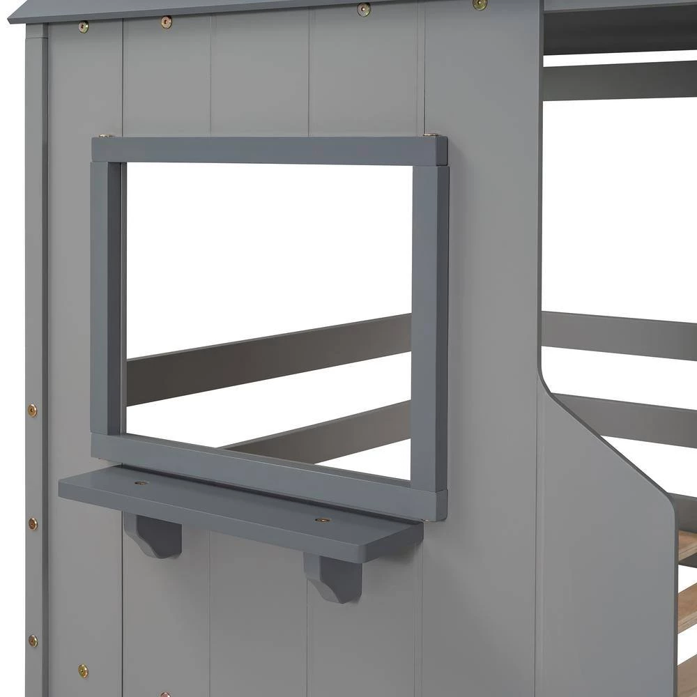 - [Playhouse Design] Featuring a pitched roof and two front windows, this unique and intricately designed bunk bed creates a fun and adorable space that not only serves as a comfortable sleeping area but also double as a space for you to play and have fun.