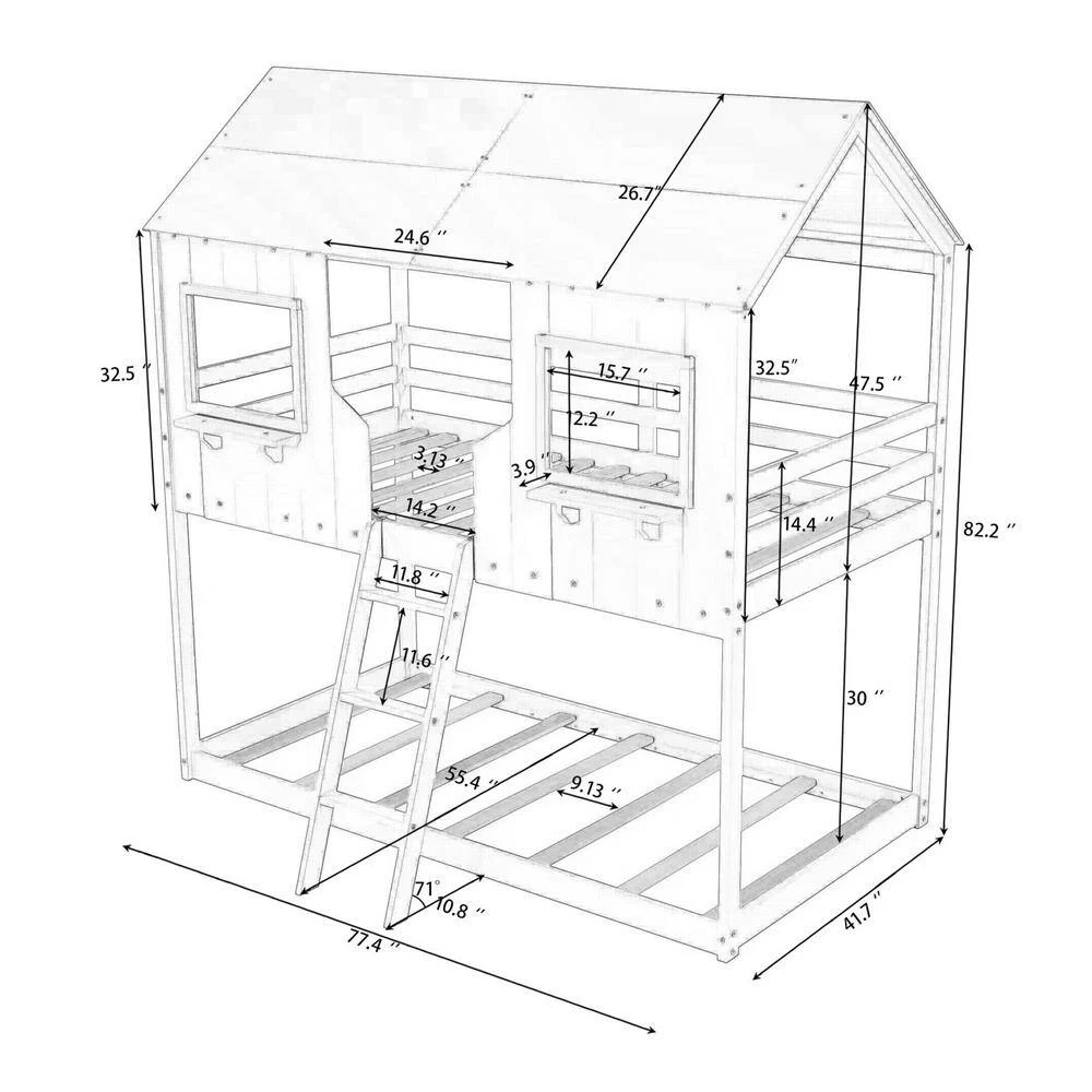- [ Dimensions ] Upper bunk – 77.4″ x 41.7″ (L x W). Bottom bunk – 77.4″ x 41.7″ (L x W). Mattress not included. Some assembly is required, although we have provided clear instructions . If you have any questions, please don’t hesitate to contact one of our friendly customer service representatives.