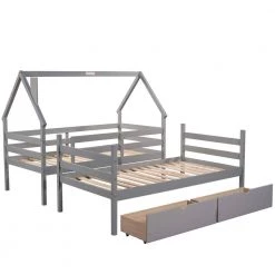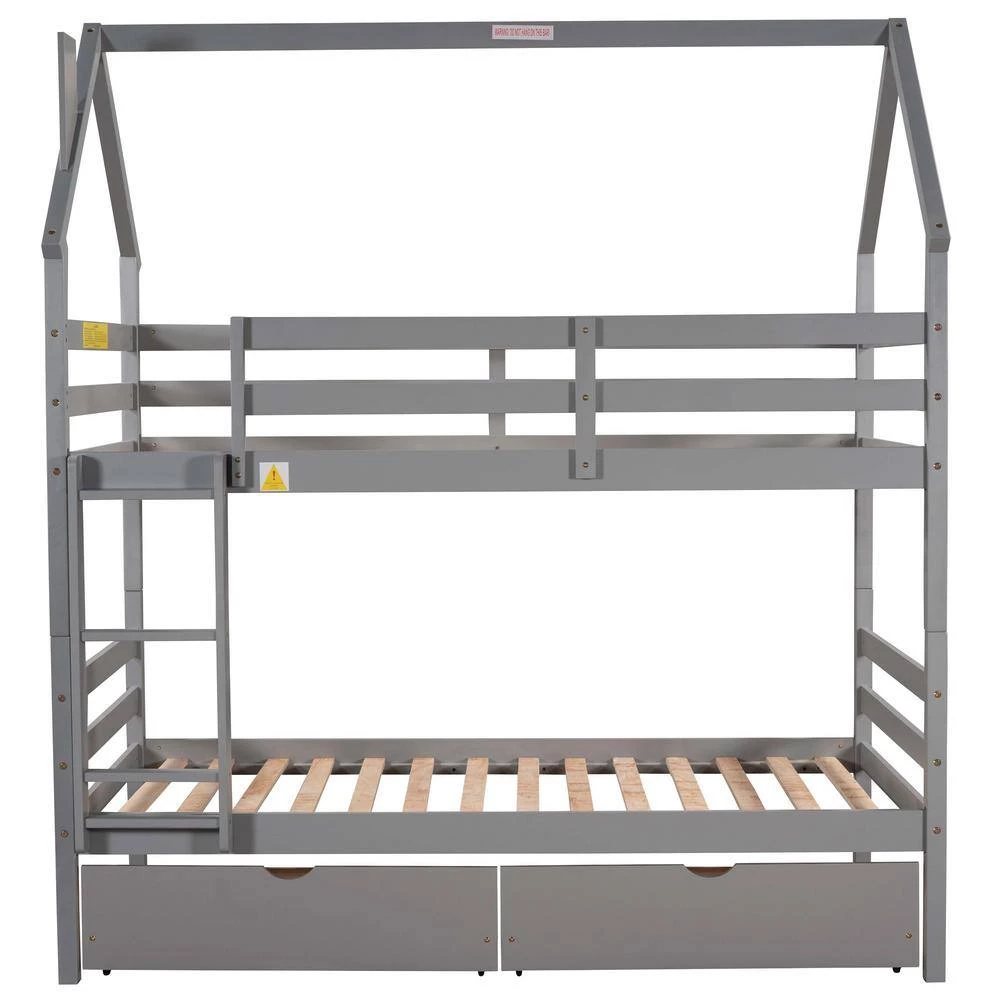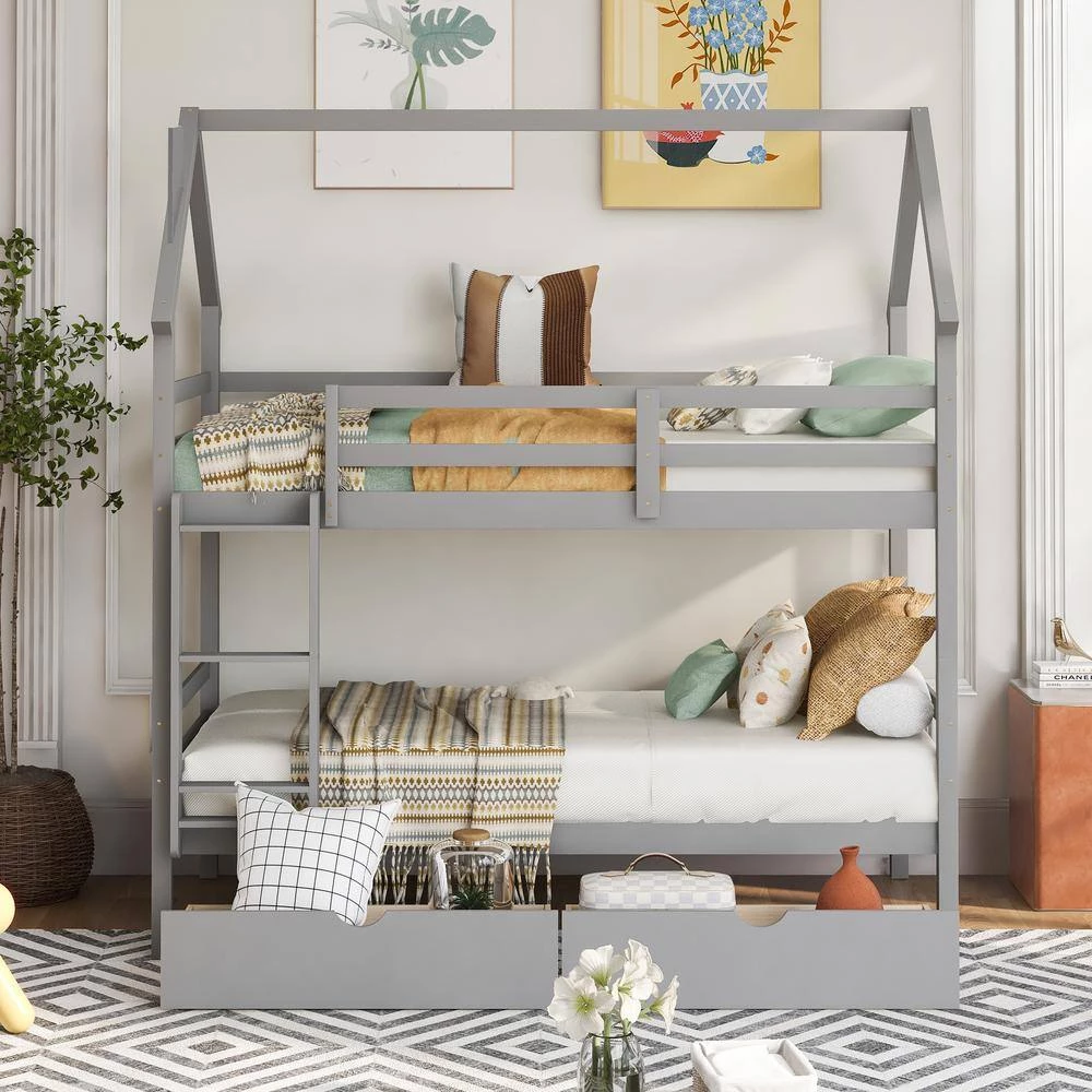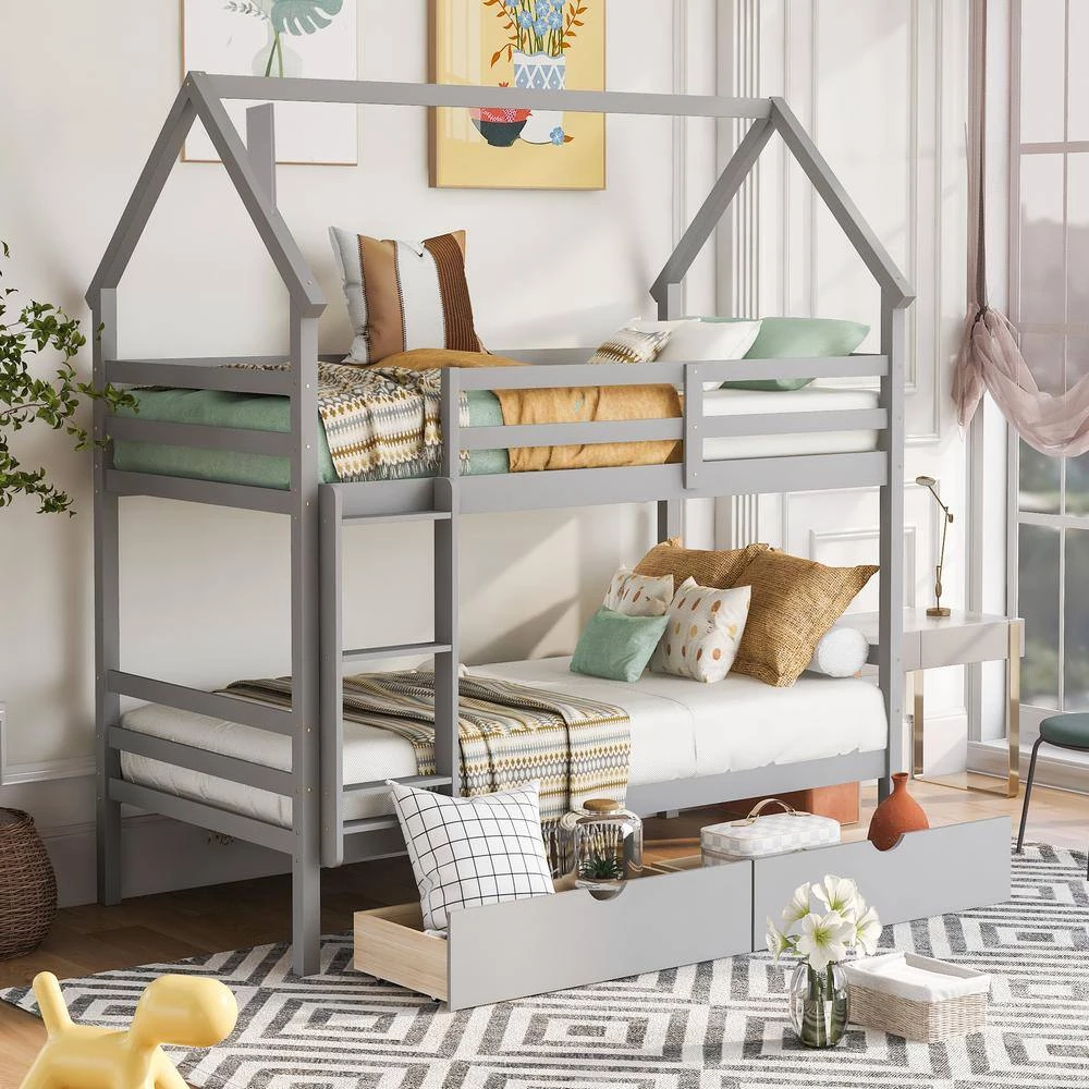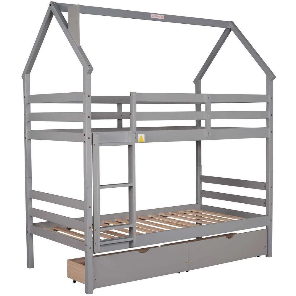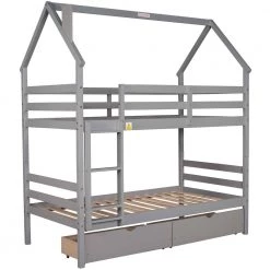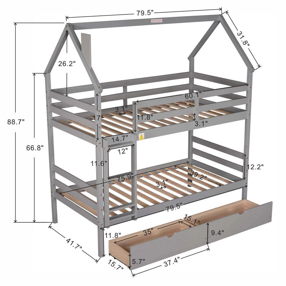- [House and Chimney Design] The design of this bunk bed has clean contours and elegant colors.The house roof and chimney adds fun for this bed.