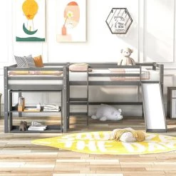 - Space-saving, low loft bed is composed of two loft bed which creates a l shaped design, suitable for putting in corner, great for those who want to save space
