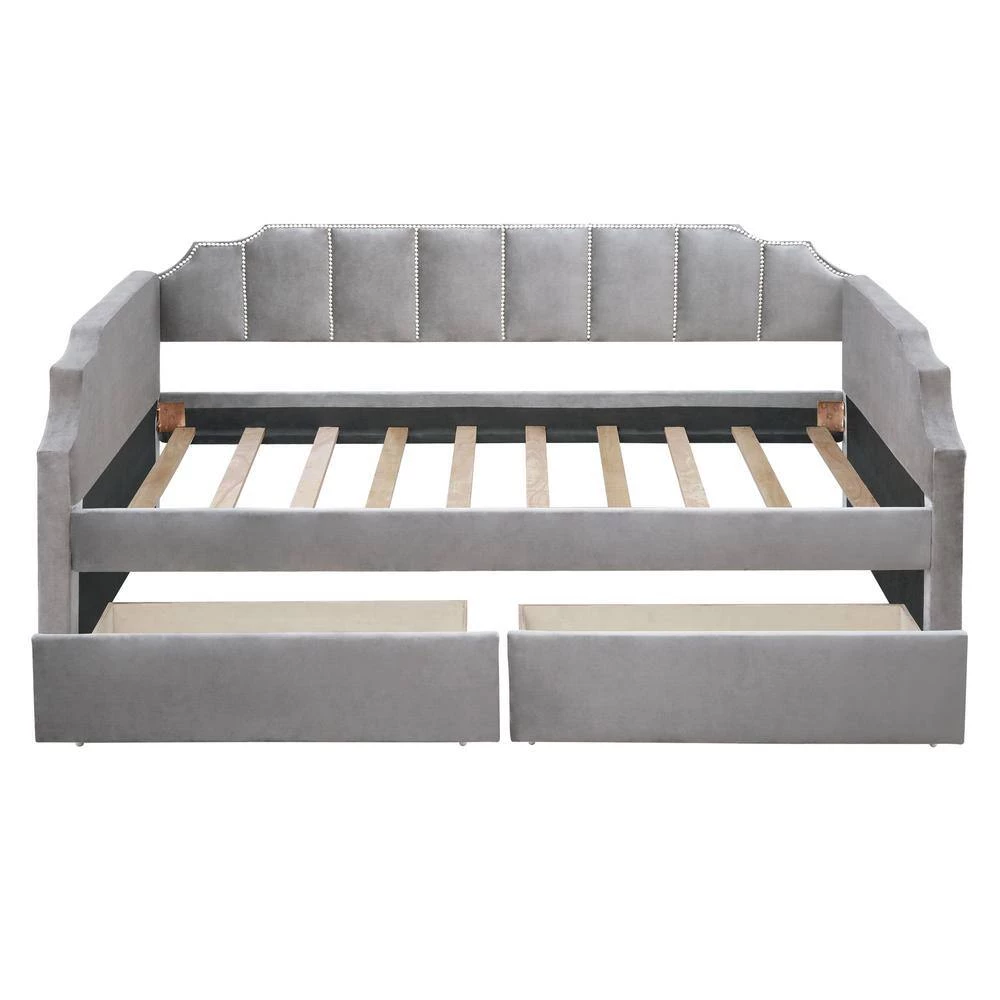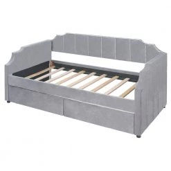 - [Elegant design] Elegant style Upholstered in carefully-selected velvet fabric, in elegant gray or beige, feature one backrest and two armrests with rivets, this daybed not only suits any home decor, but is timeless in its design. The soft textile bedhead creates coziness, while the two colors of the design creates versatility.