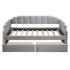 - [No Box Spring needed] This daybed frame comes with sturdy wooden slats. Mattress is not included. A comfy velvet fabric and two armrests that bring you and your family a cozy feeling.