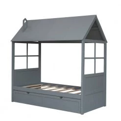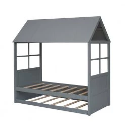Take your children’s bedroom to the next level with this Twin Size House Bed with Twin Size Trundle that not only saves space, but creates an exciting atmosphere for your kids. Featuring a playhouse-inspired window, this bed doubles as a play place perfect for kids to study, watch TV or explore their imaginations. Enjoy this bed for years to come with its durable build, manufactured with quality lumber and pinewood to withstand horseplay, scratching and other untimely wear. Comes complete with thick slats to preserve the life of your mattress.
