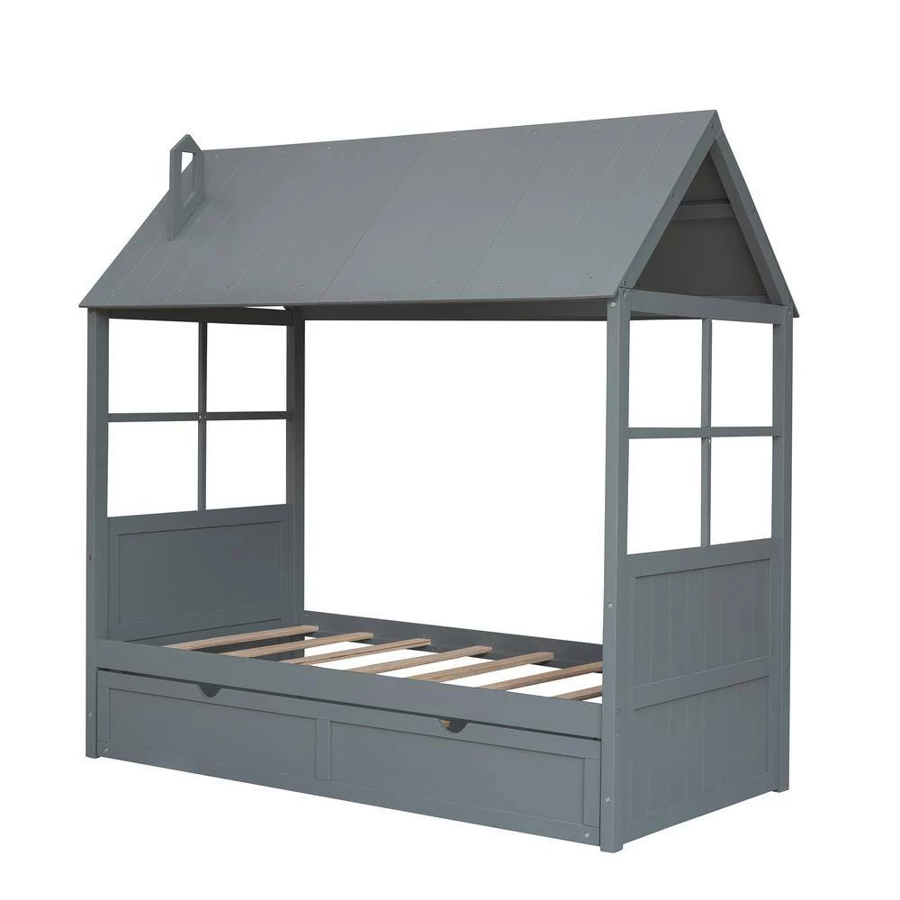 - [Maximized space]Twin Size House Bed with Trundle perfectly serves homes with limited space. Twin size Trundle underneath the wood bed can provide extra sleeping space