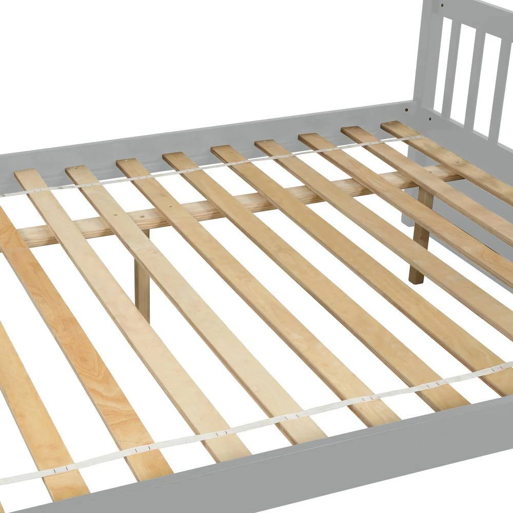 - bunk bed is mainly crafted from quality pine wood, 10 bed slats upgraded to 14 bunk slats,providing lasting sturdiness and durability. addition of a slat-support further increases stability of lower bedframe, optimizing environment, comfort and mind for better quality sleep and more restful nights. high guard rails surrounding upper-bunk bed will further protect children from falling off bed.
