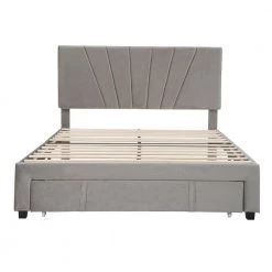 This beautiful Upholstered Platform Bed features upholstered headboard that adds a contemporary chic look to your bedroom and filled in thick foam to add extra comfort. Sturdy wood frame construction and a wooden slat system to add extra stability and safety. With such a sturdy, on-trend design one would expect this bed to have a much higher price point, although in actual fact this piece aligns with our ethos of allowing customers the unique experience of shopping for curated pieces which capture the essence of what a living room or bedroom should be. Good design should be accessible to all.