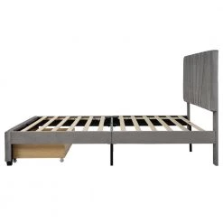 - No box spring required, with 12 reinforced slats, mattress (not included) will be well supported and your body weight will be evenly distributed for a great sleeping experience enjoy convenience and unparalleled ease of use that queen size wood platform bed provides headboard is included as a comfy velvet fabric backrest that brings you and your partner a cozy feeling