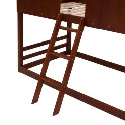 - House shaped, featuring a pitched roof and wall section with window, this unique and intricately designed bunk bed creates a fun and adorable space that not only serves as a comfortable sleeping area but also double as a space for you to play and have fun