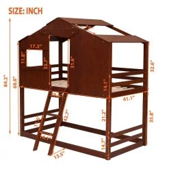 - Solid construction, crafted from high-quality solid pine wood, the bunk bed frame can last for long time use no box spring box is needed roof are made from mdf boards, ensuring strong stability and durabilityfeaturing a classic house-shaped framework, this imaginative bed is equipped with a sky roof to simulate a playhouse for a fun bedroom environment