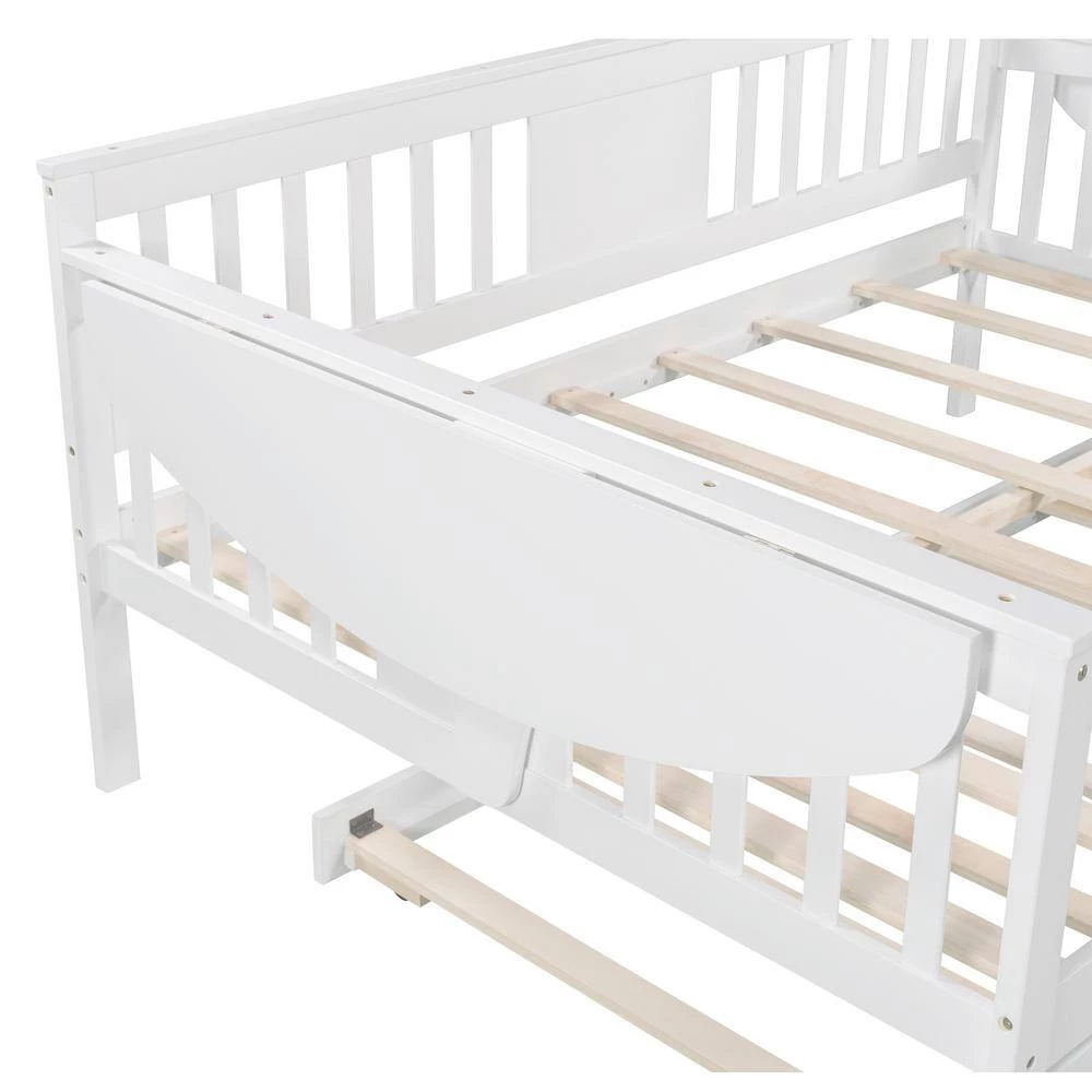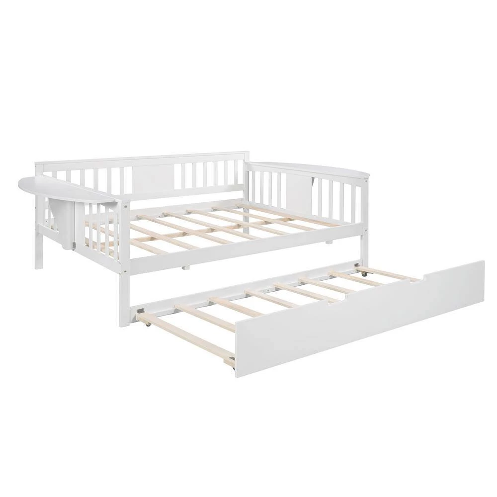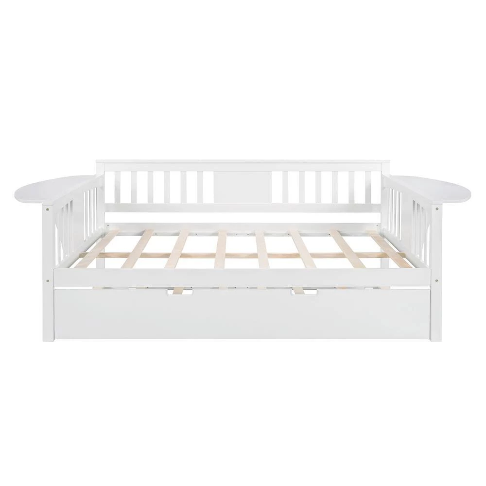 - [Multi-functional design] this daybed frame with rails in three sides not only can be a bed to be placed in your bedroom but also is ideal to be a sofa or seat in your living room, with small foldable table on the left and right, where you can put a cup of coffee or book at hand, it can meet your different needs perfectly
