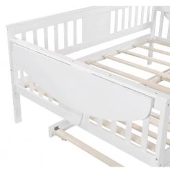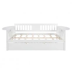 Are you looking for a bed or sofa to sleep or have rest in leisure time. Our dual-use daybed frame with three rails can be used as sofa or bed. It is a good choice for you. High-quality, solid pine legs and a strong, durable frame ensures stability and durability for long-term use. Slat kit included so box springs are not required. Besides, the height of clearance under the bed is about 11.8 in. which is helpful to put your store boxes and suitcases for taking conveniently and your room will be clean and neat. This daybed is designed with a clean silhouette and a hue of elegance. It suits all styles of home decoration, and completes the look of any bedroom.
